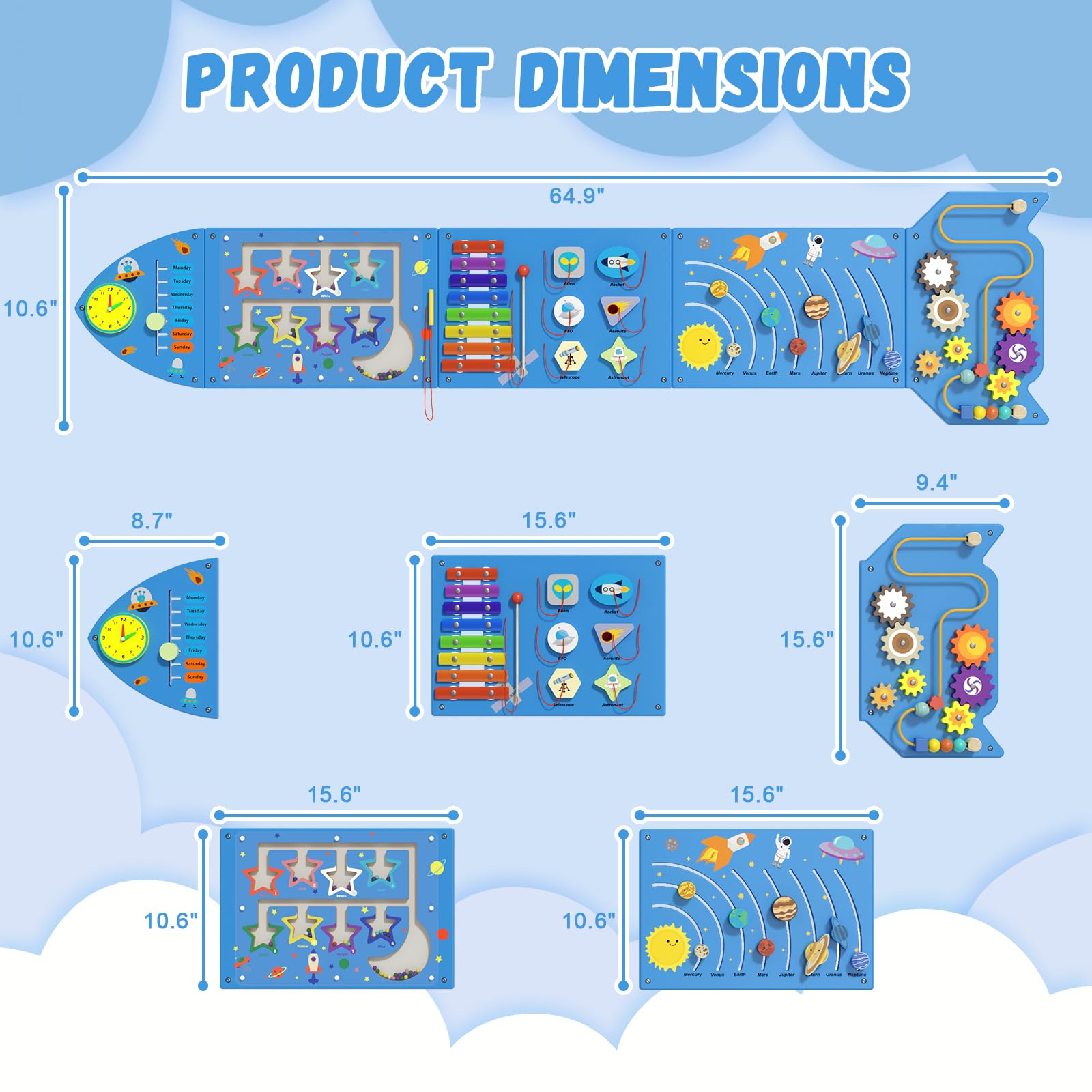 NIGWET Rocket Sensory Wall Panel - Montessori Toddler Activity Cube, Blue