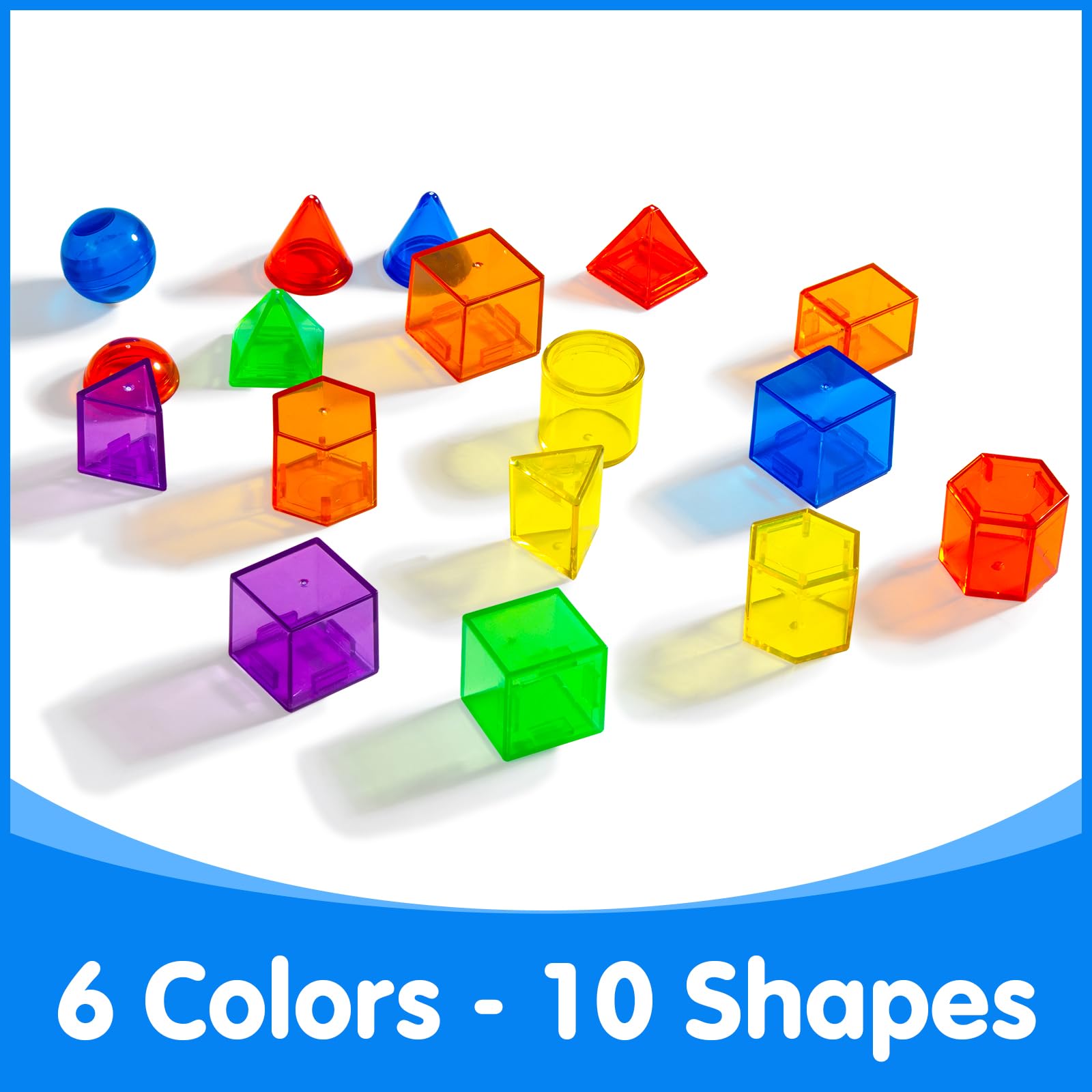 - Q: Can these shapes be used for sorting and stacking activities? A: Absolutely! The set includes 60 individual solid shapes, each about 1 inch in diameter, making them ideal for sorting, stacking, and classifying by color, shape, or size. These activities foster cognitive development and fine motor skills.