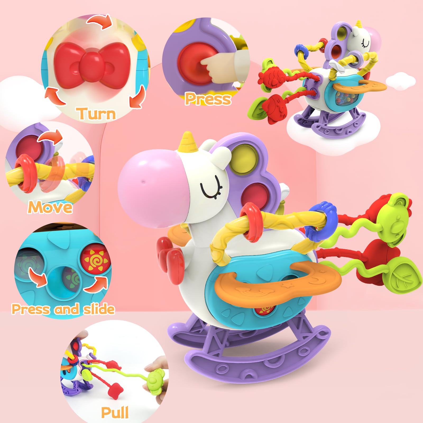 Seveclotree Babies Toys For 12 Months,Sensory Toys For Toddlers 1-3, 3 In 1 Activities Busy Cube,Pull String Teether And Baby Ti