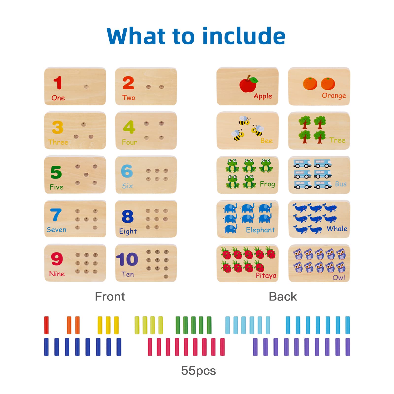 ?Montessori Toys Of Peg Board?Learn Colors, Counting, Addition, And Subtraction, And Use Vivid Animal Images Or Fruits To Make It Easier For Children To Learn Calculations,This Wooden Toys Of Peg Board Is A Good Math Manipulatives. ?Multifunctional Product Construction?Composed Of 10 Different Numbers And Colors Of Peg, Children Learn How To Count As They Place Each Peg Into The Hole. There Are Animal Images With Numbers Corresponding To The Number On The Back, Making Children Fall In Love With These ?Learning & Education Toys For Multi-Age?Toddlers Learn To Count From This Montessori Numbers, While Preschoolers And Kindergarteners Explore How To Add & Subtract Up To Number 20. Our Toy Is Inspired By Montessori Math Practices, Combining The Aesthetic + Tactile Learning + A Self-Exploratory & Corrective Design. ?Quality&Longevity?Peg Board Are Crafted Of Durable Hardwood, And Coated With A Child-Safe Lacquer For A Smooth, Beautiful, Lasting Finish. Made From High-Quality, Sustainably Harvested Rubber Wood.Designed To Fit Into Your Library Of Montessori Toys For 3 Year Old ?Preschool Learning Toys Gift?Counting Toys Can Be Used As Kids Toys, Toddler Toys, Christmas Gift, Toys For Girls, Boy Toys Or As Montessori Math Materials, Preschool Toys, Learning Toys For 3 Year Olds