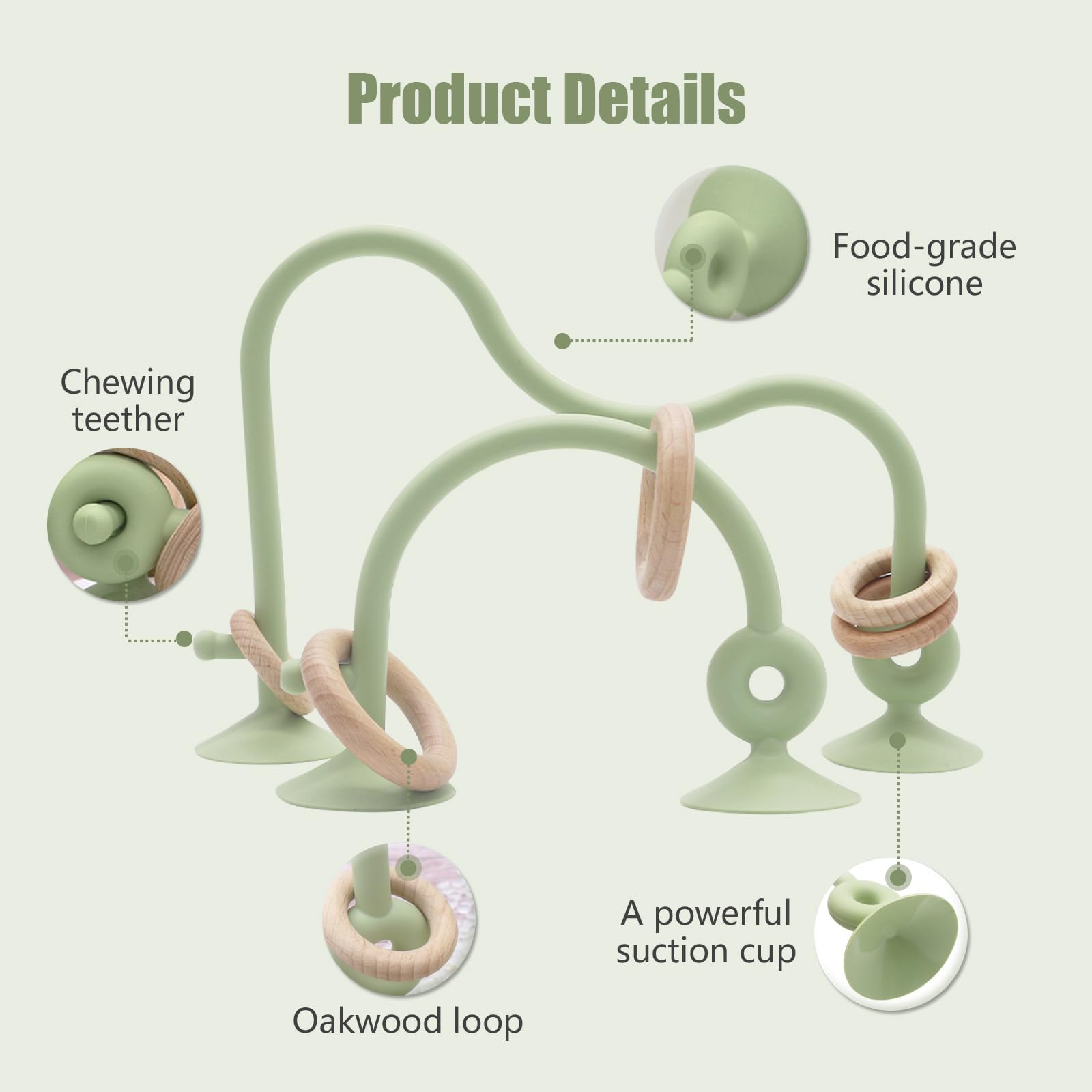 The High Chair Toys Designed To Improve A Child'S Concentration And Relieve Boredom And Irritability, The Montessori Educational Toy Is A Suction Toy That Can Easily Attach To High Chairs, Smooth Tables, Windows And Bathtubs, Providing A Safe, Interactive Play Experience (If The Table Is Dusty, It May Affect The Suction, So Please Try To Keep The Surface Smooth And Clean) 2.Our Products Are Made Of Food Grade Silicone Material And Oakwood Loop Ring, Smooth And Non-Toxic, It Can Ensure The Safety Of Children When Playing, And Can Also Be Used As Dental Toys. 3. Promote The Development Of Skills: Our Toys Are Designed To Stimulate Children'S Fine Motor Skills And Hand-Eye Coordination, Improving Children'S Cognitive Abilities. 4. Portable And Lightweight Design, It Can Be Easily Put In The Backpack, Easy To Carry When Going Out.