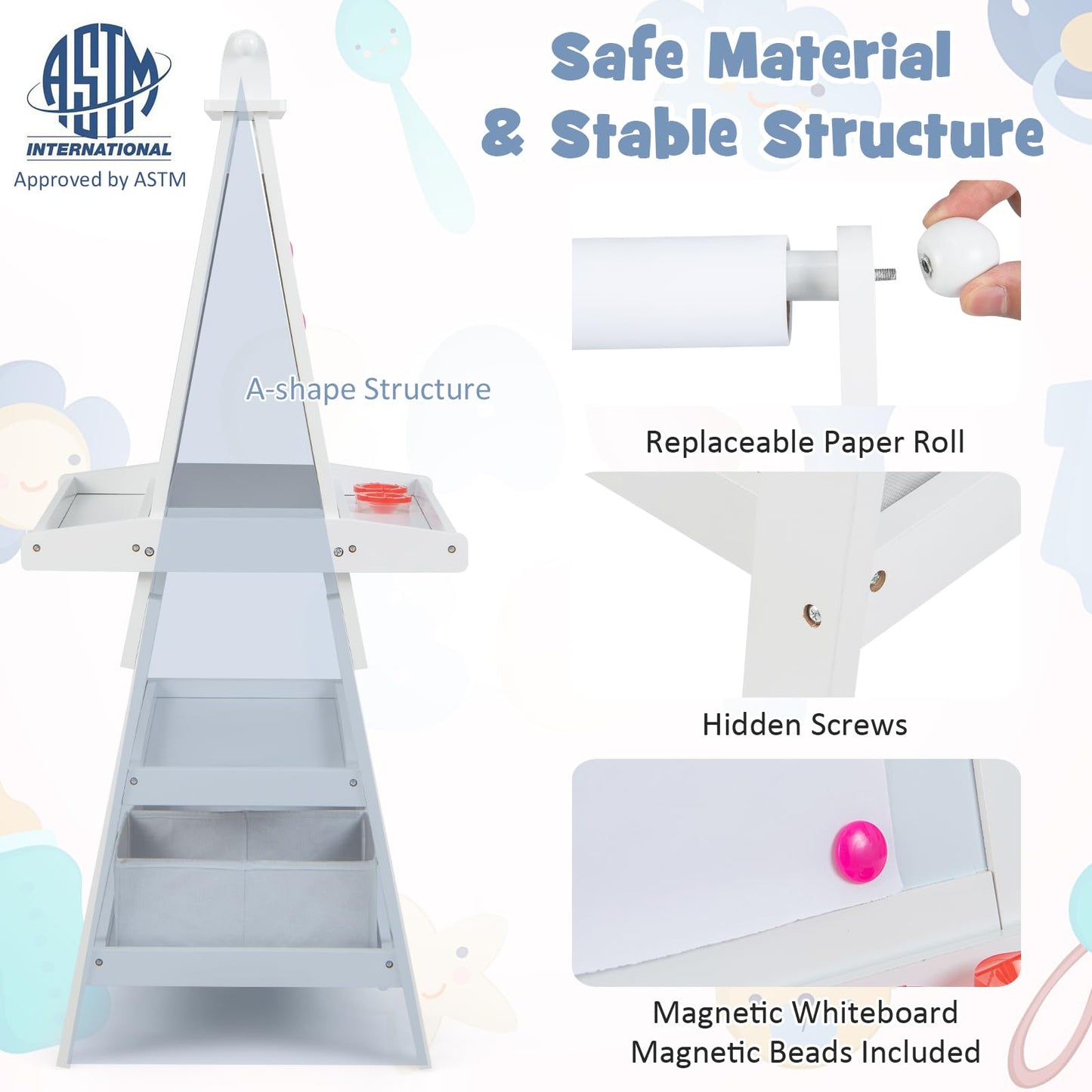 - Q: Does the easel come with any accessories? A: Yes, the Costzon Kids Art Easel includes several accessories: 1 roll of drawing paper, 2 magnetic beads for securing paper, 2 anti-spill paint cups, and 2 removable fabric storage bins for organizing art supplies.