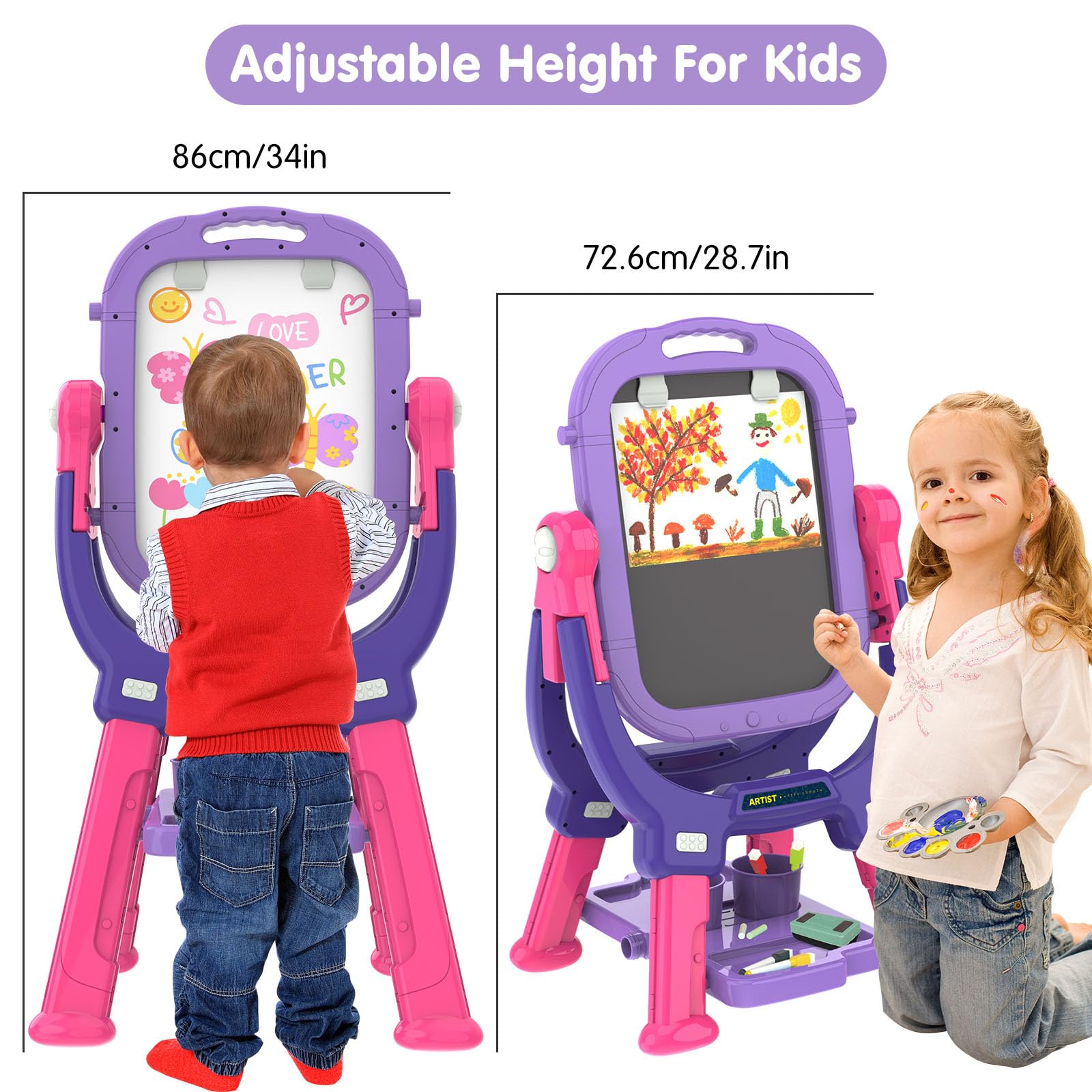 Victostar Easel for Kids, Rotatable Double Sided Adjustable Standing Art Easel with Drawing & Writing Accessories for Kids Boys