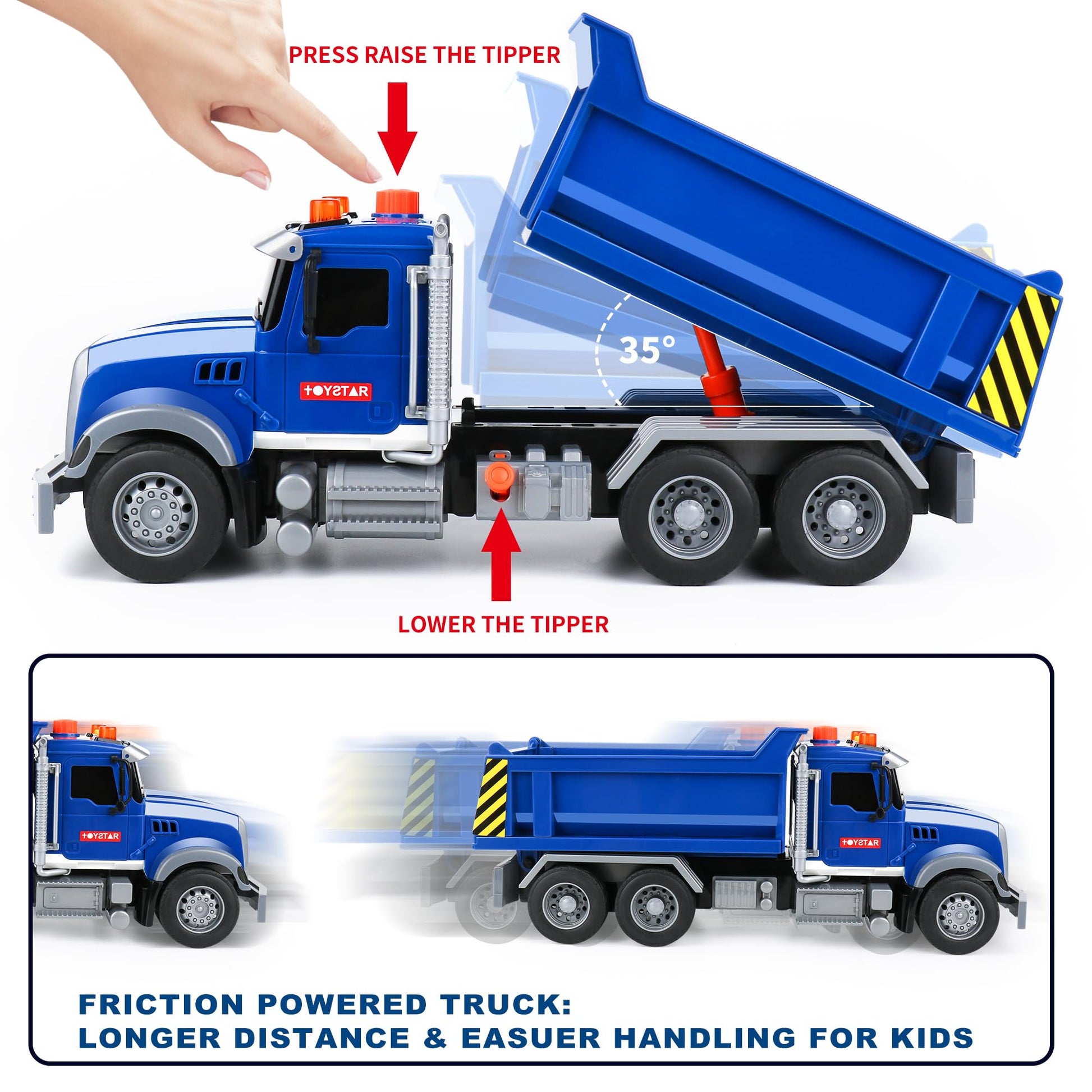 - Q: What are the dimensions of the dump truck toy? A: The dimensions of the dump truck toy are 14 x 5.1 x 5.3 inches, making it a large and engaging toy for young children to play with.