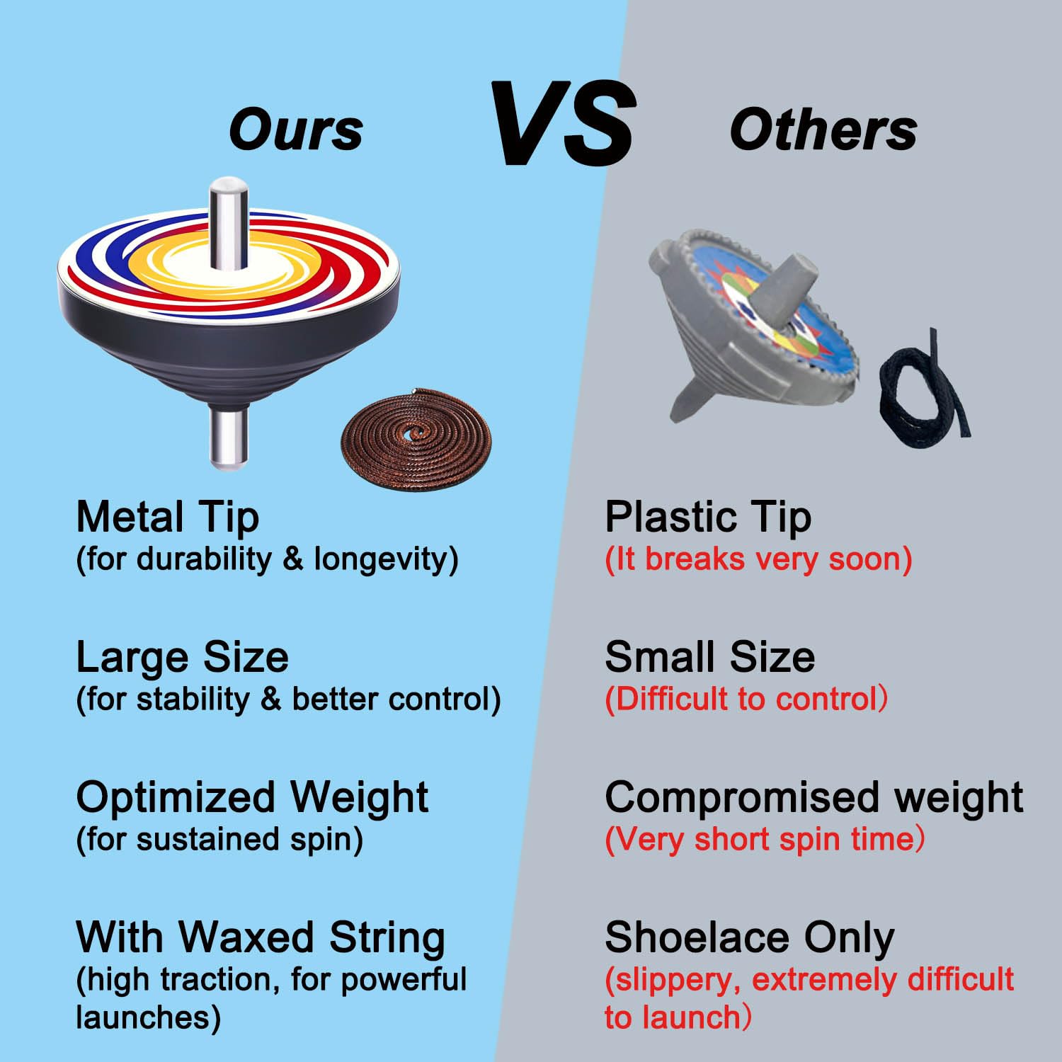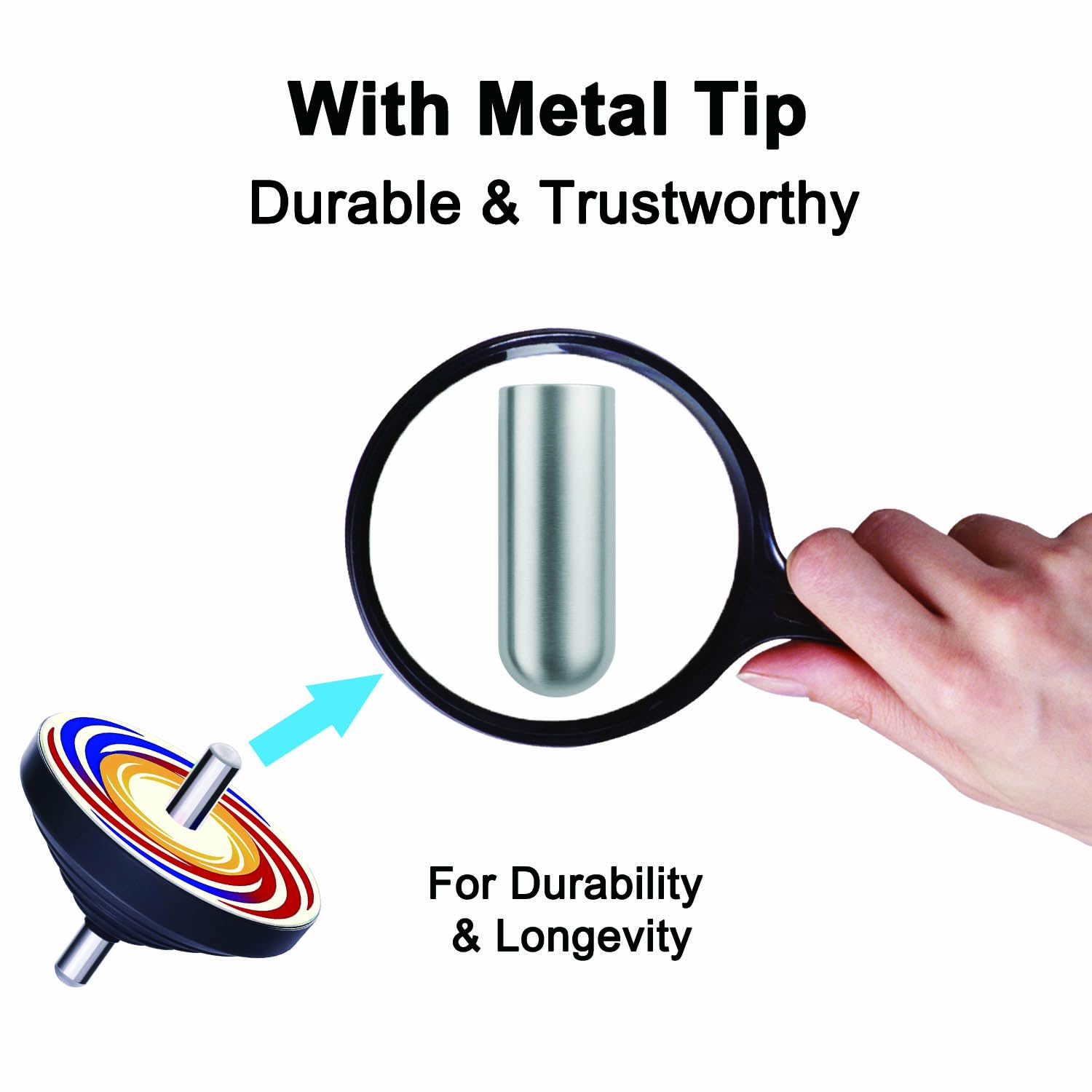 Key Features:- Premium Heavy Duty Design: Crafted from durable plastic with a solid metal tip, this 2.2 oz spinning top delivers exceptional balance and longer spins.
