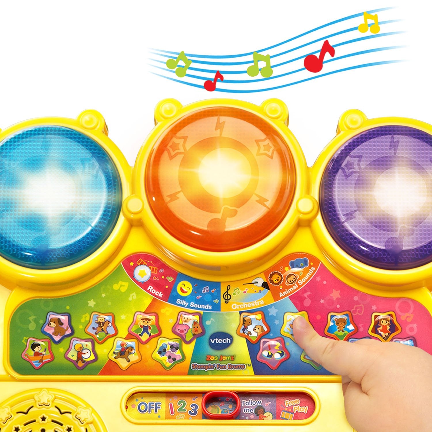 - Q: What age is the VTech Zoo Jamz Stompin' Fun Drums suitable for? A: The VTech Zoo Jamz Stompin' Fun Drums is designed for children aged 2 to 5 years, providing a fun and engaging way for toddlers to explore music and rhythm.