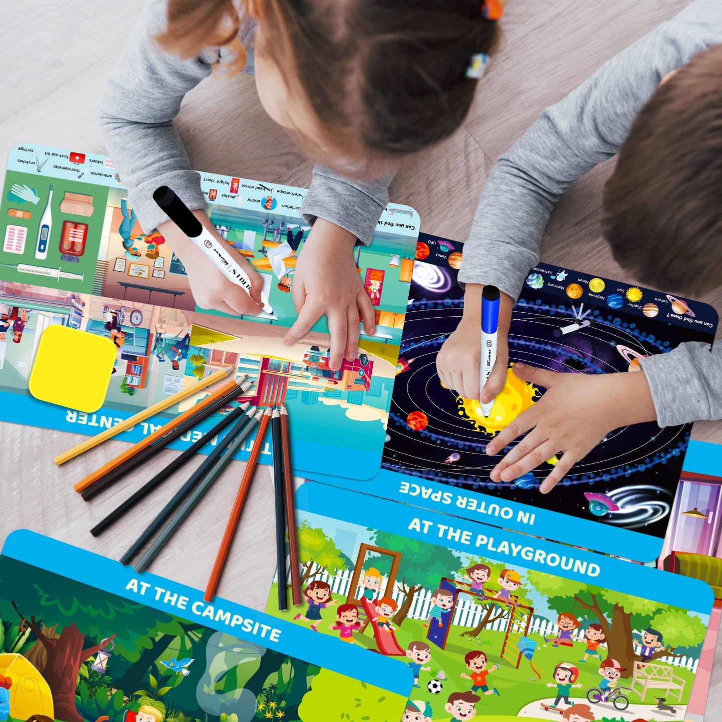 Search And Find Cards For Kids Ages 3 4 5 6 Year Old, Toddler Preschool Learning Reusable Activity Mats, Boys Girls Kindergarten Educational Games