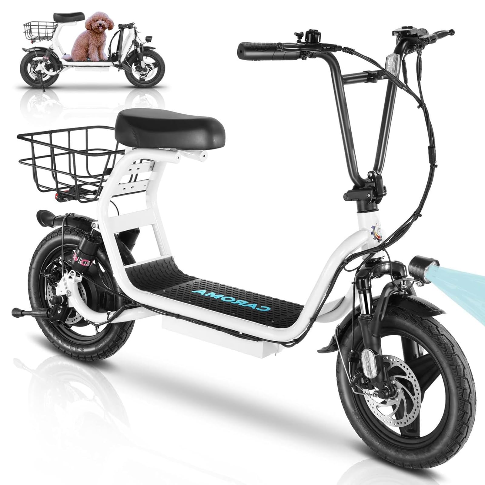 ???819W Motor & 48V Battery?: Caroma P1 electric scooter is powered by a robust peak 819W motor, reaching top speeds of 20 mph and handling 15% hill grades with ease. Its high-capacity 48V lithium battery, enhanced by regenerative braking, provides a remarkable range of up to 25 miles. Perfect for commuting or leisure rides, this adult electric scooter offers unparalleled versatility and high performance. | ???Dual Shock Absorption & Large 14'' Tires?The adult electric scooter features multiple shock absorption , including front and rear shock absorber and soft wide seat, significantly reducing discomfort. Its 14'' pneumatic tires provide excellent grip, high elasticity, and wear resistance. The extra-wide deck makes long rides enjoyable and effortless. | ???Portable and Durable Travel Partner?: Equipped with foldable handlebar, the e scooter can be easily stored and carried in your trunk, you can ride it anytime you like. The aluminum frame of this electric scooter is strong and durable, which can support a maximum weight of 300 pounds. The large capacity basket is prefect for shopping trips and short errands around the block. | ???LCD Display & Safe to Ride?: The LCD monitor shows the battery level, so you can get a clear picture of your riding. The effective front and rear disc brake on the e-scooters provide excellent stability and control. The high-brightness headlight and rear brake light keep your riding safe at night. | ???Easy Assembly & After Sales Service?: This electric scooter is UL 2272 certified. Only the seat and the basket attachment needed to be assembled after the 2 wheel electric scooter for adults arrives. We provide a 12-month warranty for the E scooter. If you encounter problems using the product, please refer to the manual. If the problem cannot be solved, feel free to contact our customer service.