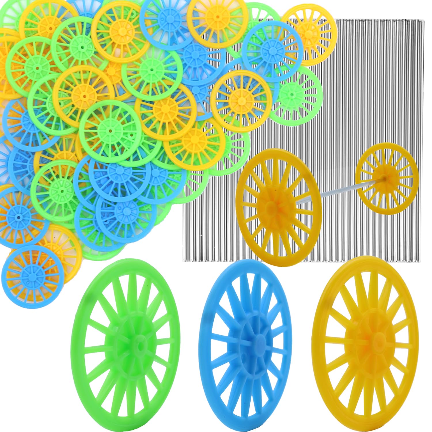 View compareDelinx 60Pcs Plastic Project Wheels With 2 Mm Hole And 30 Pcs Shaft Rods,100 Mm Round Rod Axles For Science Engineering Car Stem