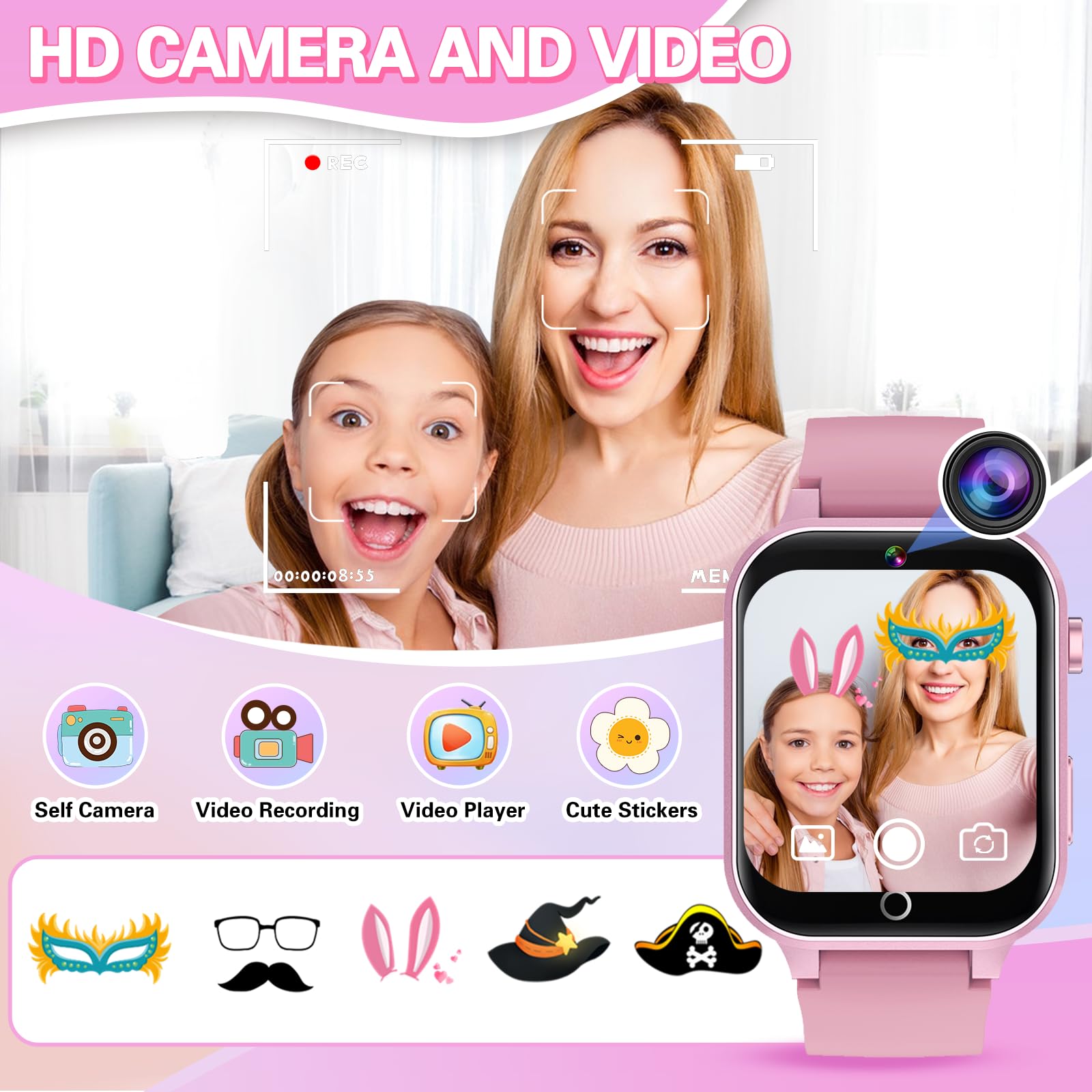 View compareVakzovy Kids Smart Watch for Girls 6-12, Pink HD Touchscreen, 26 Games, Video Camera, Music, Pedometer - Educational Birthday Gift
