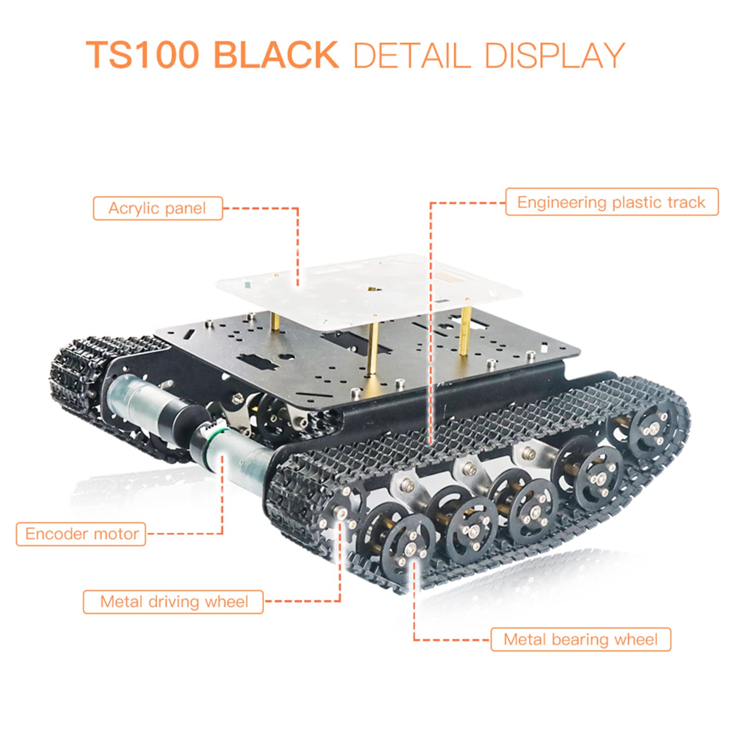 Professional Shock Absorption Metal Robot Tank Car Chassis Kit With Dc Encoder Motor For Arduino / Raspberry Pie Introduction Chassis Suspension (Suspension) System Is The General Name Of All Force Transfer Devices Between The Frame And The Axle Or Wheel. The Main Function Of Suspension Is To Transfer All Forces And Moments Between The Wheel And The Body, Such As Supporting Force, Braking Force And Driving Force, And Ease The Impact Load Transmitted To The Body From Uneven Road Surface, And Attenuate The Vibration Caused By It Ensure The Comfort Of Passengers, Reduce The Dynamic Load Of Cargo And Vehicle Itself. &Nbsp; Tank Chassis Parameters Size: 275*190*95Mm/ 10.83*7.48*3.74In (Length*Width*Height) Net Weight: About 1.1Kg/ 2.43Lb Working Voltage: 9-12V Load Weight: 3-5 Kg Material: Aluminum Alloy Track: Engineering Plastic (4.1Cm Wide, Freely Removable) Drive Wheel: Metal Bearing Wheel: Metal Independent Damping System &Nbsp; Motor Parameters Name: 25Mm Gear Motor Output Speed: 15010%Rpm No_Load Current: 200Ma (Max) Stall Current: 4500Ma(Max) Stall Torque: 9.5Kgnan Rated Speed: 10010%Rpm Rated Torque: 3000Gnan Rated Current: 1200Ma (Max) Noise: 56Db Working Voltage: 9-12V Outside Shaft Length: 14.5Mm Shaft End Play: 0.05-0.50Mm Screw Size:M3.0 Dia. Of Shaft Phi 4Mm, D3.5 Encoder: 6Pulses/Circle Working Voltage For Sensor: 3-5V &Nbsp; Shipping List Metal Part: 1Set Bearing Wheel: 10Pcs Driving Wheel: 2Pcs Plastic Track: 2Pcs Encoder Dc Motor: 2Pcs Screws Kit: 1Set Others: Several