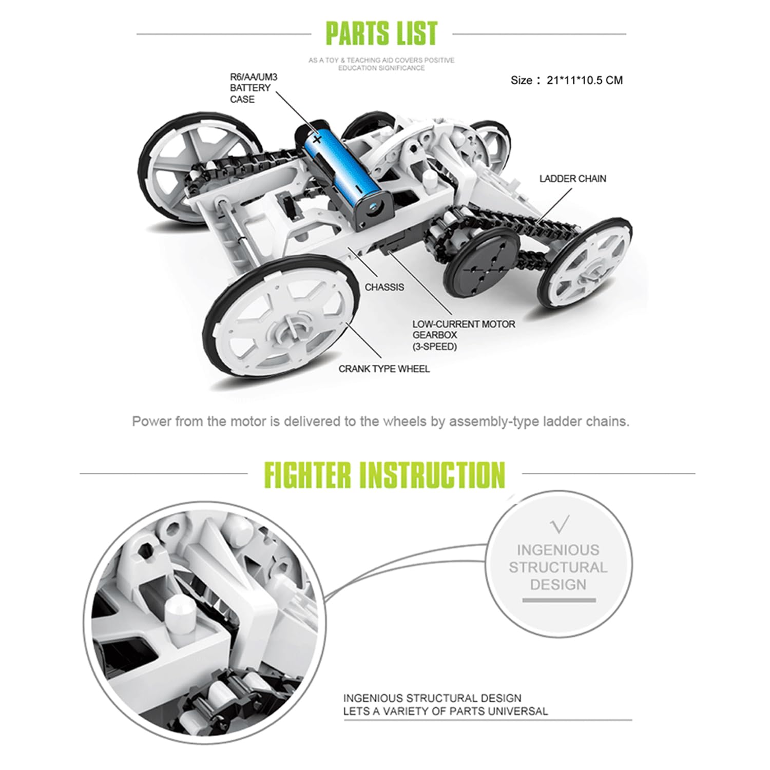 Product Description: 1. Orivast Stem Toy Is A Four-Wheel Drive Diy Climbing Vehicle, Which Can Help Children Learn The Mechanical Transmission Structure Of The Vehicle Model By Using Their Own Hands On Their Practice. 2. Learn How Electrical Energy Can Be Converted Into Mechanical Energy, And How To Change The Chassis Height Of The Vehicle To Come Across Obstacles. Learn How To Improve The Vehicle'S Cross-Country Ability To Come Across Obstacles Through Adjusting The Combination Of Transmission Crankshaft'S Dislocation Variation. 3. Through Learning Practice, The Children Can Systematically Master The Principles Of Energy Transformation And Mechanical Movement Structure. 4. In The Procedure Of Assembling, Children Will Have A Taste Of Joy And Achievement By Conquering Challenges From Time To Time, Which Is Beneficial For Children'S Creativity Cultivation And Intelligence Development. Product Size: Package Size (L X W X H) : 11 X 6.7 X 2.2 (Inches) Vehicle Size (L X W X H) : 8.3 X 4.3 X 4.1 (Inches)