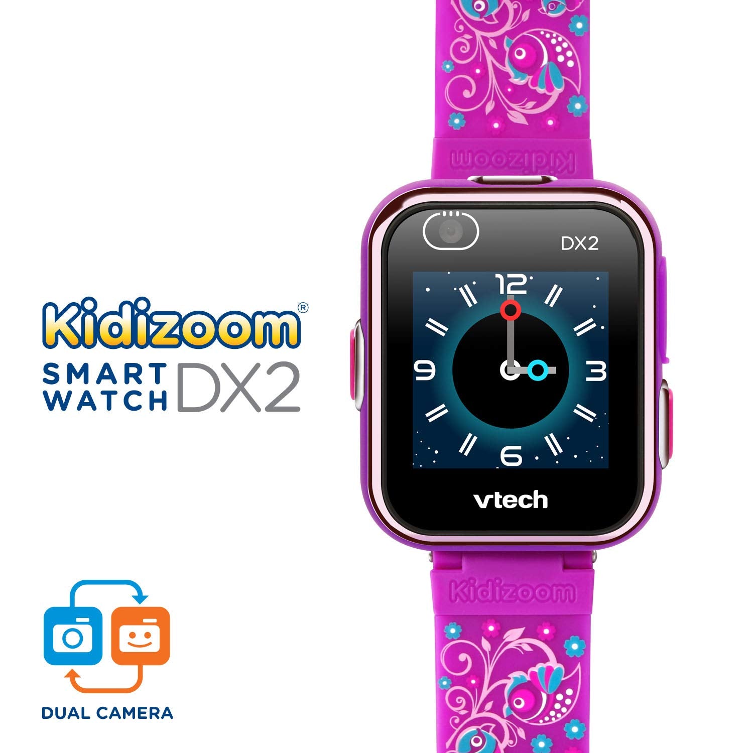 KidiZoom Smartwatch DX2 is the perfect tech for kids. Its kid-friendly, reliable and lets kids take quality pictures and videos, play games and tell time right out of the box. Featuring a stylish design, the secure and durable watch is sized for kids wrists. Two cameras allow kids to capture photos, selfies and action videos that can be customized with funny filters in the Silly Me app and made into watch faces. Choose from 55 digital and analog watch faces that help kids learn to tell time. Includes high-tech games like Monster Detector, which uses the camera and AR to help kids find and capture monsters in the real world. Use the motion sensor for active play challenges or to track steps. Parents can safely share photos and videos at their discretion only by uploading them to a computer using the included micro-USB cable. Free games, watch faces and camera effects are available from Learning Lodge. This multifunction smartwatch is like Mom and Dads, designed just for kids and is available in multiple colors (sold separately). Intended for ages 4+ years. Battery included. Only charge this device using the included Micro-USB cable connected to a computer. Do not charge using a third-party adapter. This product is not compatible with iOS, Android, and GPS functionality.