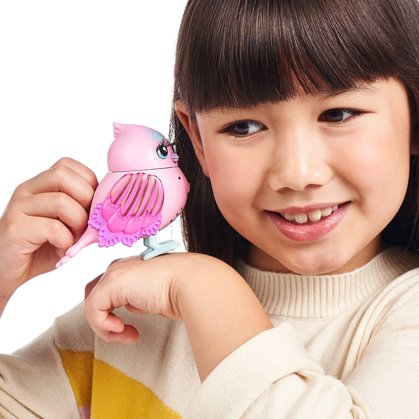 Little Live Pets - Lil Birds are the sweetest birds youll ever meet! These adorable little round birds with big beautiful eyes and long beautiful lashes, come to life in your hands as you pet and interact with them. Meet Princess Polly - With a majestic sweet voice, this pretty winged princess truly owns her throne! Gently stroke Princess Pollys back and she will tweet and turn her head for you! She really reacts to your touch! The more you pet, the happier your Lil Bird will get! Princess Polly will chirp and tweet for longer and eventually whistle a tune for you! She loves to chat and repeat what you say! Press her talk button on her chest and say your message. Princess Polly will move her beak and turn her head while immediately repeating your message back to you! These colorful toy birds will brighten your day with over 20 bird sounds to sing! Princess Polly has very regal wings and looks so majestic with her crown glasses on her head! Collect the other Lil Bird Pretty Posh and clip her Birdhouse to Princess Pollys house to create a beautiful hanging display! Each Lil Bird has decorations and features on their wings and faces that relate to a certain theme. Get them all to form your own fabulous flock!