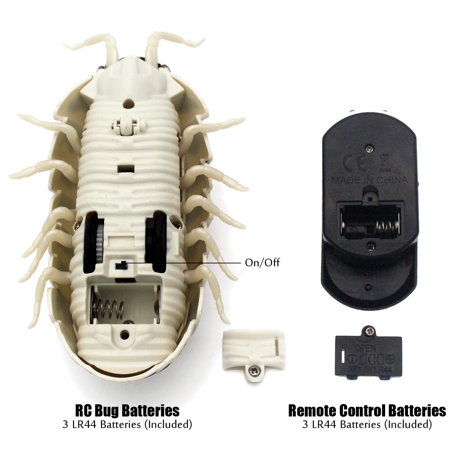 Specifications: Product Name: Remote Control Bug Material: ABS Plastic + Electronic Components Color Options: White, Black & White Stripes Functions: Go Forward, Back Rotation, Auto Demo Controller Type: Infrared Controller Remote Control Distance: 6-8 m/ 20-26 ft Suitable Age: Above 6 Years Old Running Time: About 10 Minutes Worm Battery: 3 x LR44 Battery (Included) Controller Battery: 3 x LR44 Battery (Included) Worm Size: 11.5 x 8 x 4 cm / 4.3 x 3.1 x 1.6 inch Worm Weight: 47 g / 1.7 oz Package Size: 19 x 16.5 x 5.2 cm / 7.5 x 6.5 x 2.0 inch Package Weight: 142 g / 5 oz Package Included: 1 x RC Bug 1 x Remote Control