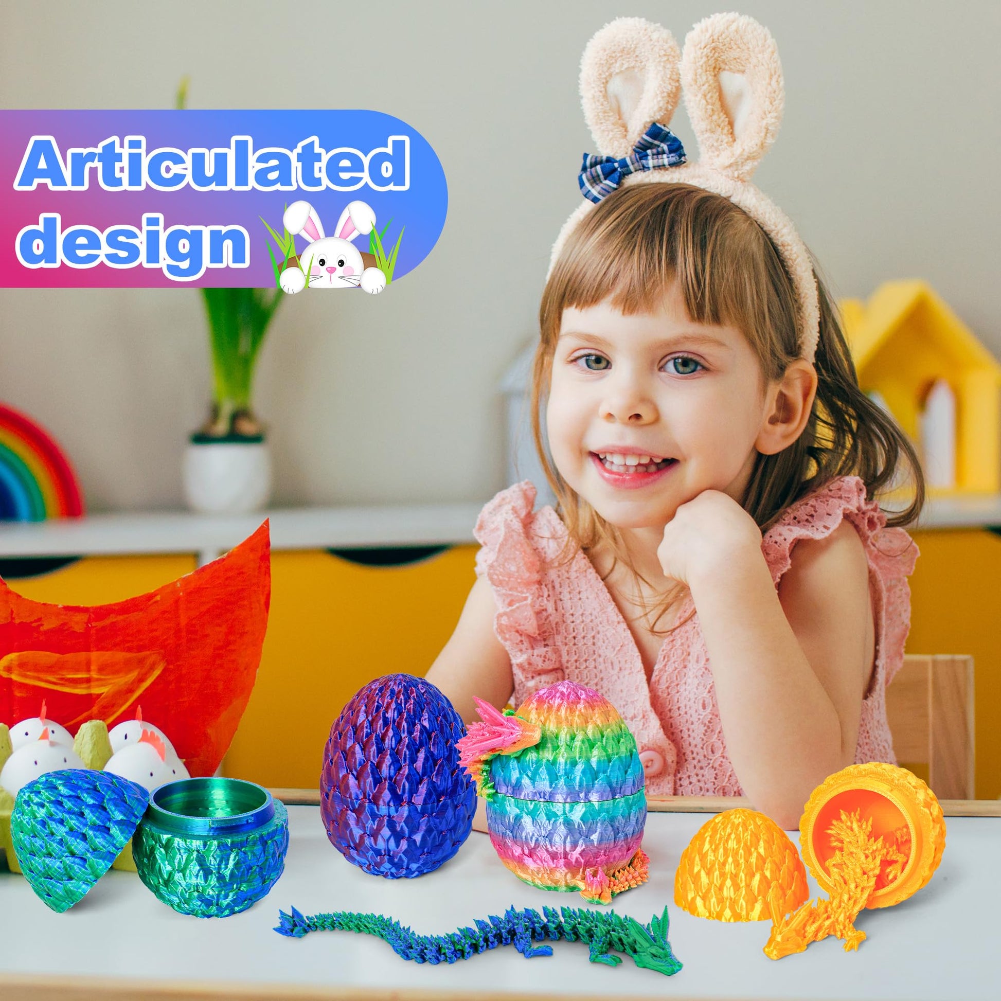 4 Pcs Dragon Egg, 3D Printed Dragon Eggs With Dragon Inside Surprise Mystery Easter Egg Fidget Toy, Articulated Crystal Toys For