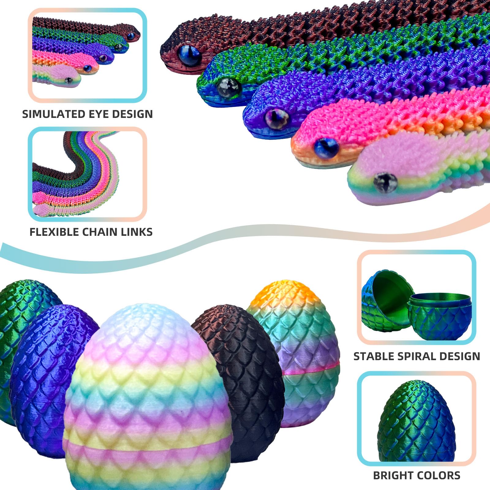 5PCS 3D Printed Snake Eggs 3D Printed Snake 3D Printed Snake Toys Set Easter Eggs Articulated Snake Easter Basket Stuffers Myste