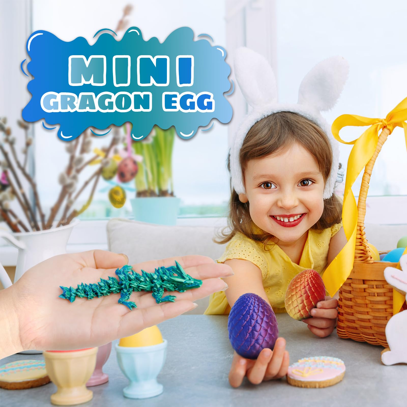 Flavery 4 Pack 3D Printed Dragon Egg, Small Eggs With Dragon Inside, Articulated Crystal Dragon Fidget Toy, Desk Decor Pet, Myst