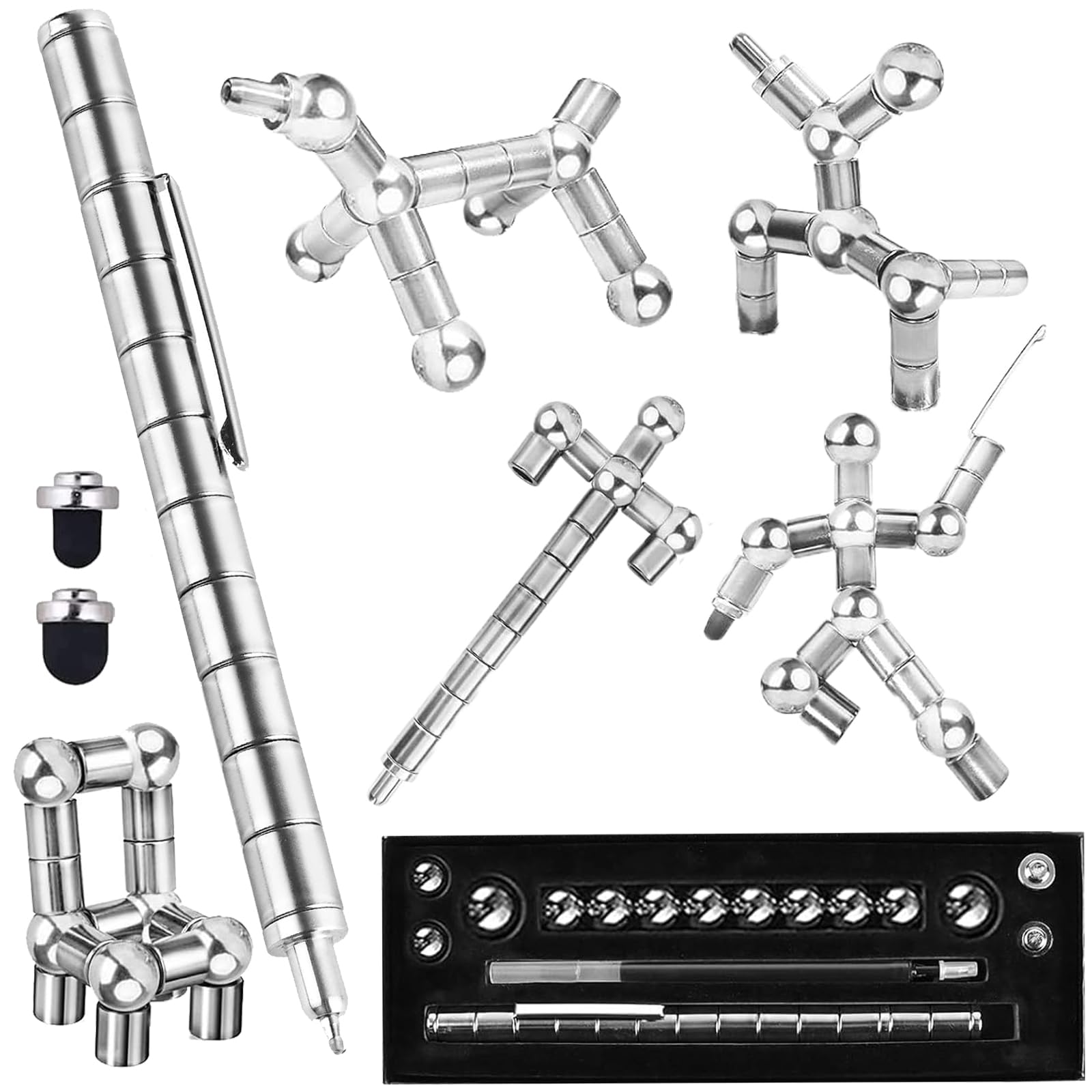 Wqwquu Fidget Pen,Magnetic Pen, Decompression Magnetic Fidget Toy Pen, Magnet Pen Fidget Toy Relieve Pressure Novel Toy Gifts For Kids Or Friends! (Silvery)