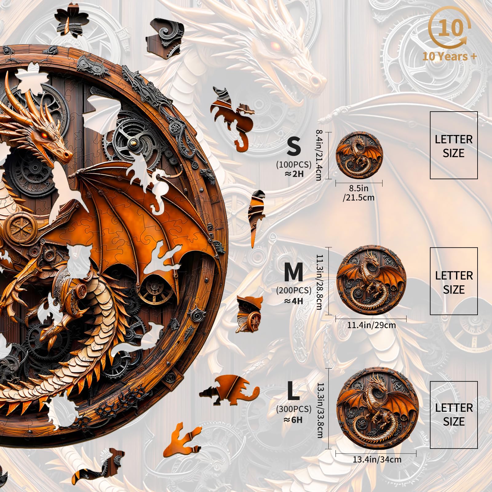 KAAYEE Wooden Puzzles for mature-themeds 3D Vision Mechanical Dragon Wooden Jigsaw Puzzles Unique Shape Advanced Wood Puzzle mature-themed Birthday Fathers Family Games (L-13.4 * 13.3in-300pcs)