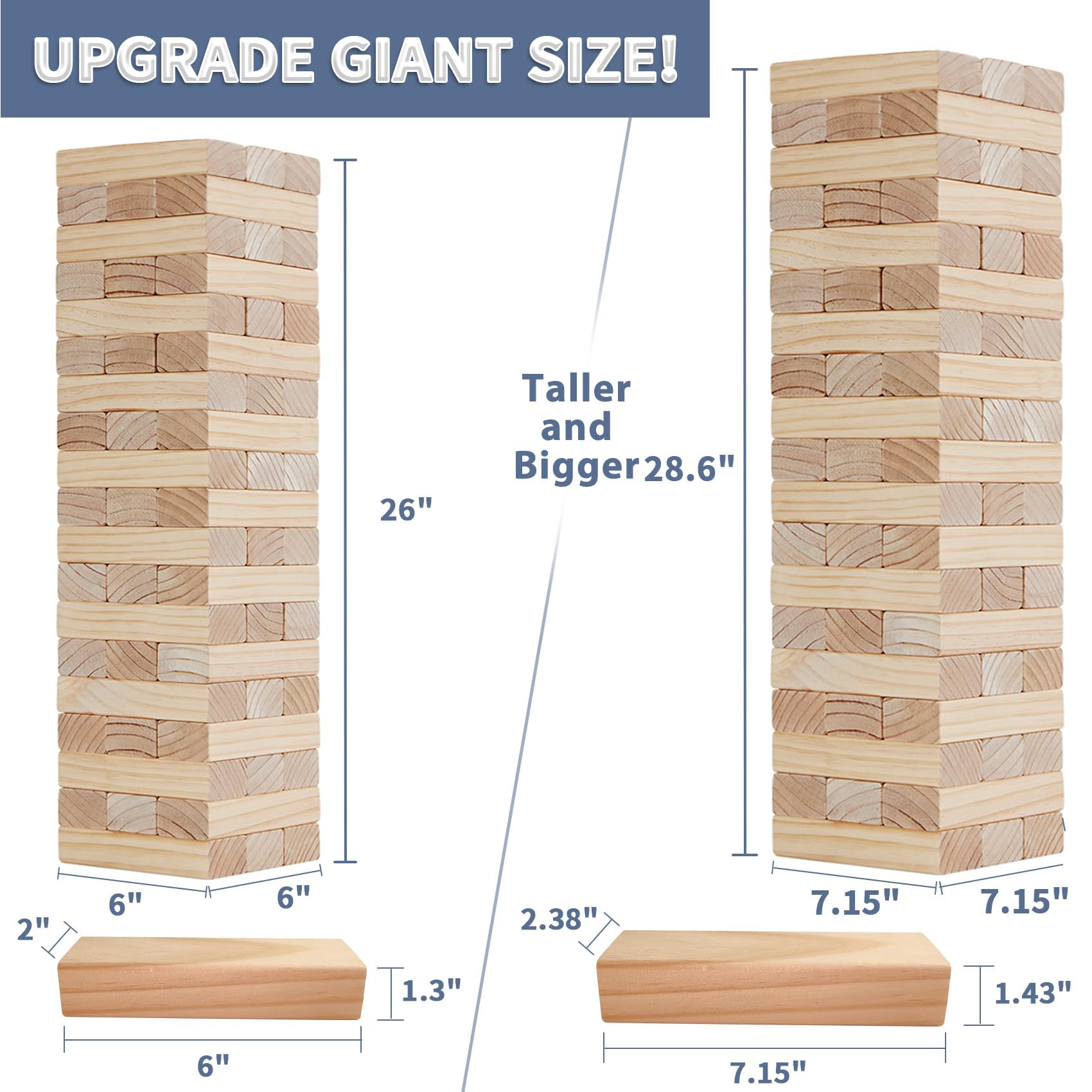 View compareMegwoz Giant Tumble Tower Game - 60 Blocks New Zealand Pine Wooden Stacking Blocks for Kids & mature-themeds Over 5FT Tall Indoor/Outdoor Family Games Birthday Party Games Unique Gifts for for All Ages
