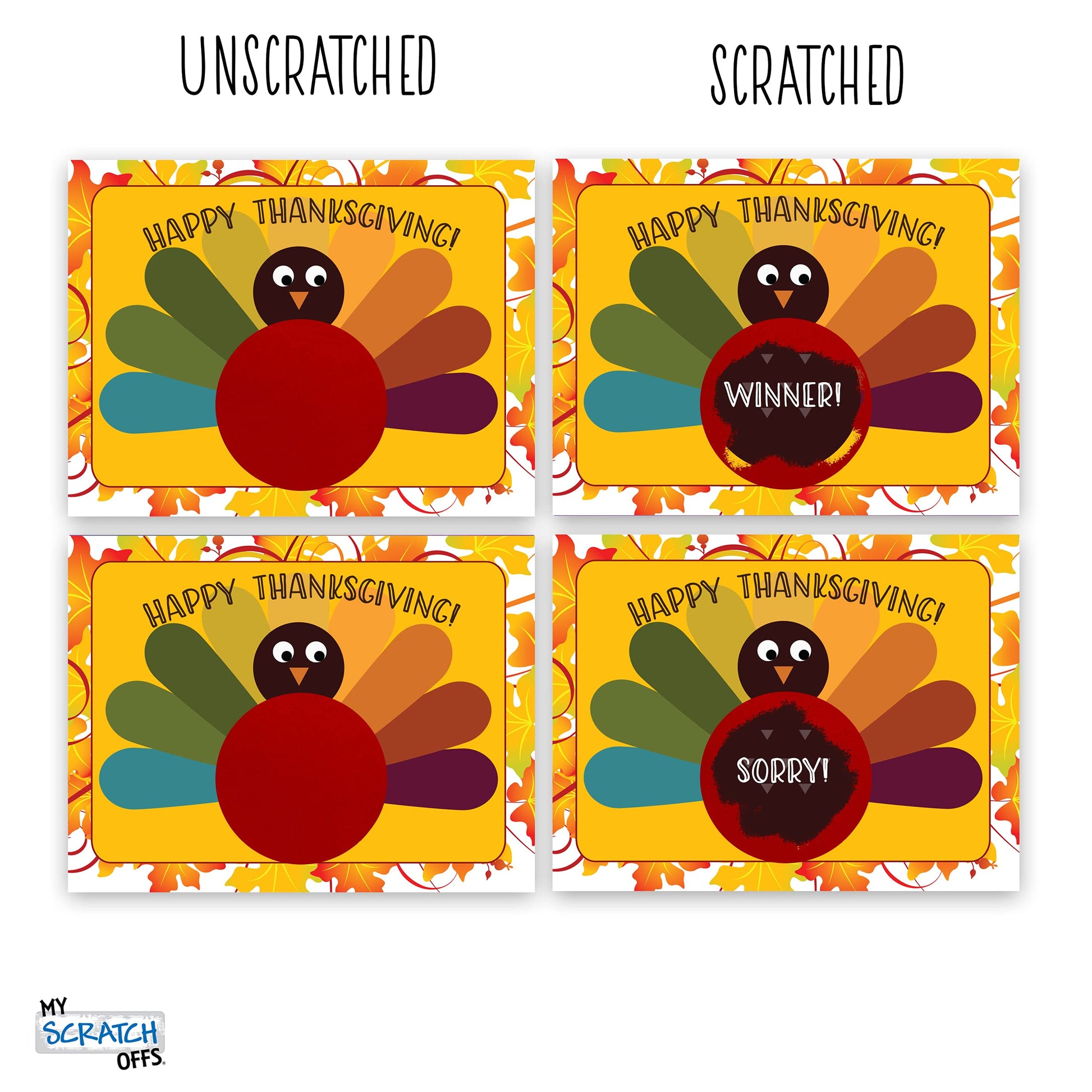 26 Fun And Cute Thanksgiving Turkey Scratch Off Game Cards 24 Sorry Cards And 2 Winning Cards (Winner Cards Will Always Be The Top Cards In The Package). Plan A Funny Or Thankful Prize For The Winner! Perfect For Family And School Thanksgiving Parties! Recommended To Be Scratched Off With A Penny, Please Do Not Use Fingernails To Scratch. Professionally Designed By My Scratch Offs And Proudly Manufactured In The Usa