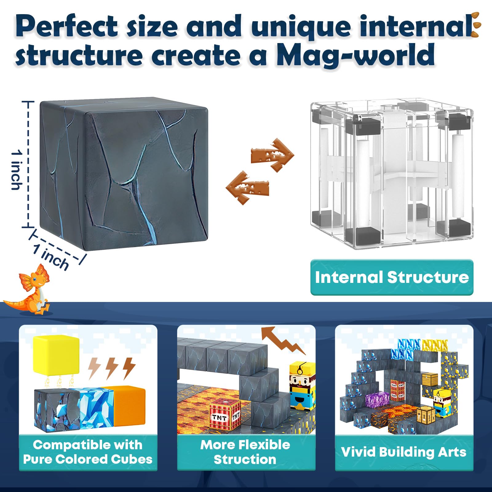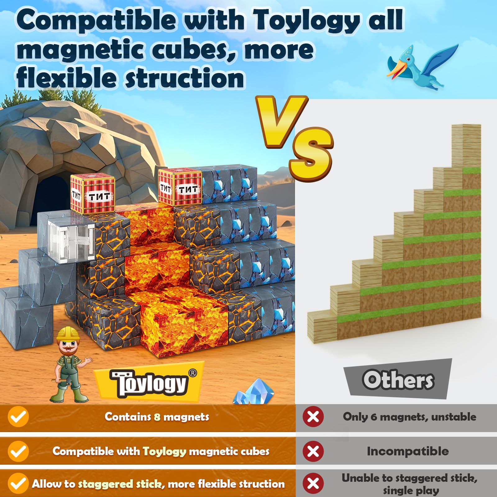100PCS Magnetic Blocks-Build Mine Magnet World Jurassic decorative replica blade Dinosaur Toys Building Blocks for Boys Girls Ages 3-5 5-7 Classroom Must Haves Stem Education Sensory Kids Toys Christmas Birthday Gifts