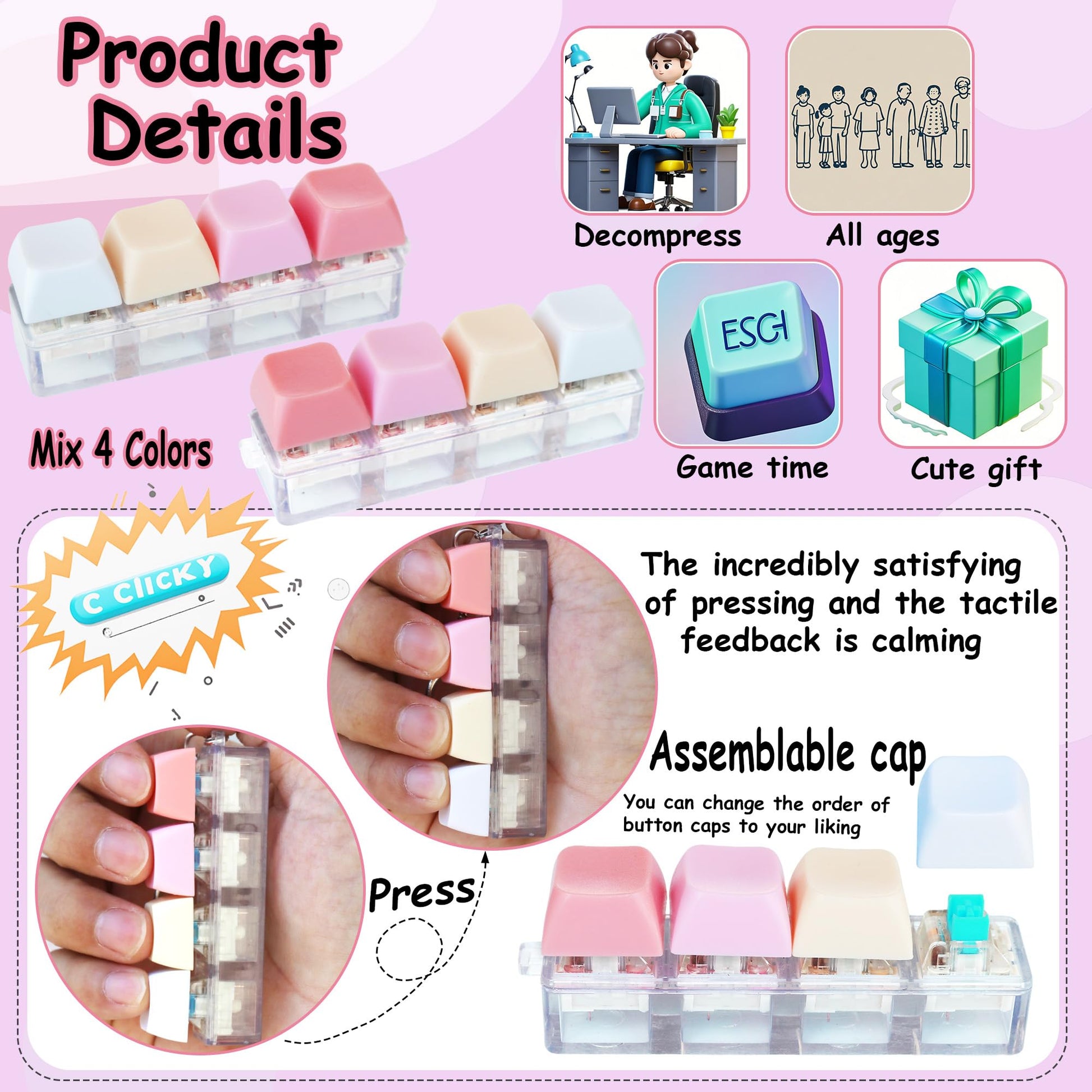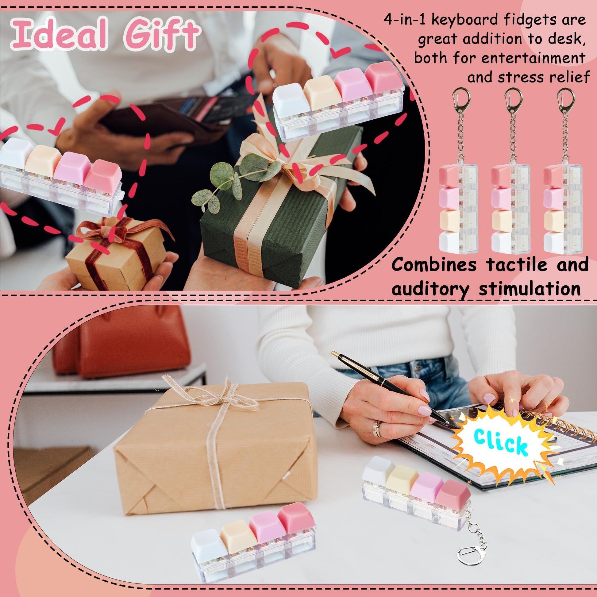 2 PCS Keyboard Fidget Toy, Keyboard Fidget Keychain 4-in-1 Keyboard Decompression Button Finger Clicker Toys, Button Stress Reli