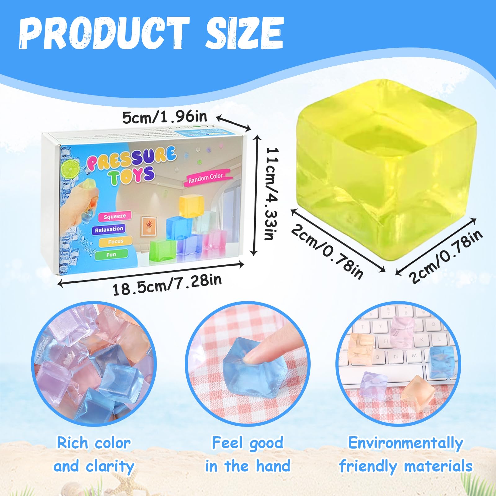 24Pcs Stress Balls for Kids Vibrant 'Random' Color S Sensory Fidget Toy: The cube-shaped stress-relief toy comes in many bright colors catering to different preferences and allowing everyone to find their preferred style. | enhanced Material Assurance Fidget Toys: Our stress-relief toys is crafted from well-made TPR soft rubber this fidget toys bulk ensuring safety durability and easy maintenance for a prolonged enjoyable experience. | Versatile Design for All Ages Stress Toys: This ice cube sensory toys is not only suitable for children but also an ideal choice for mature-themeds. Whether at the office home or school this kids toys effortlessly play. | Compact and Portable Squeeze Ball Kids Toys: The squeeze ball is designed to be lightweight and portable this cube stress ball can be carried easily our stress relief toy providing a moment of relaxation anytime anywhere-be it during travel work or at home. | Ideal Gift Choice: Whether as a birthday holiday easter basket essentials christmas halloween or festive gift this stress relief cube makes a thoughtful choice. This cube offering friends family or colleagues a gift of relaxation and joy demonstrates your care and consideration by this stress balls. | Please note that!!! It's a random color!!! We are committed to providing well-made toys to our customers. If y ou have any questions or issues feel free to contact us via email. We will address your concerns