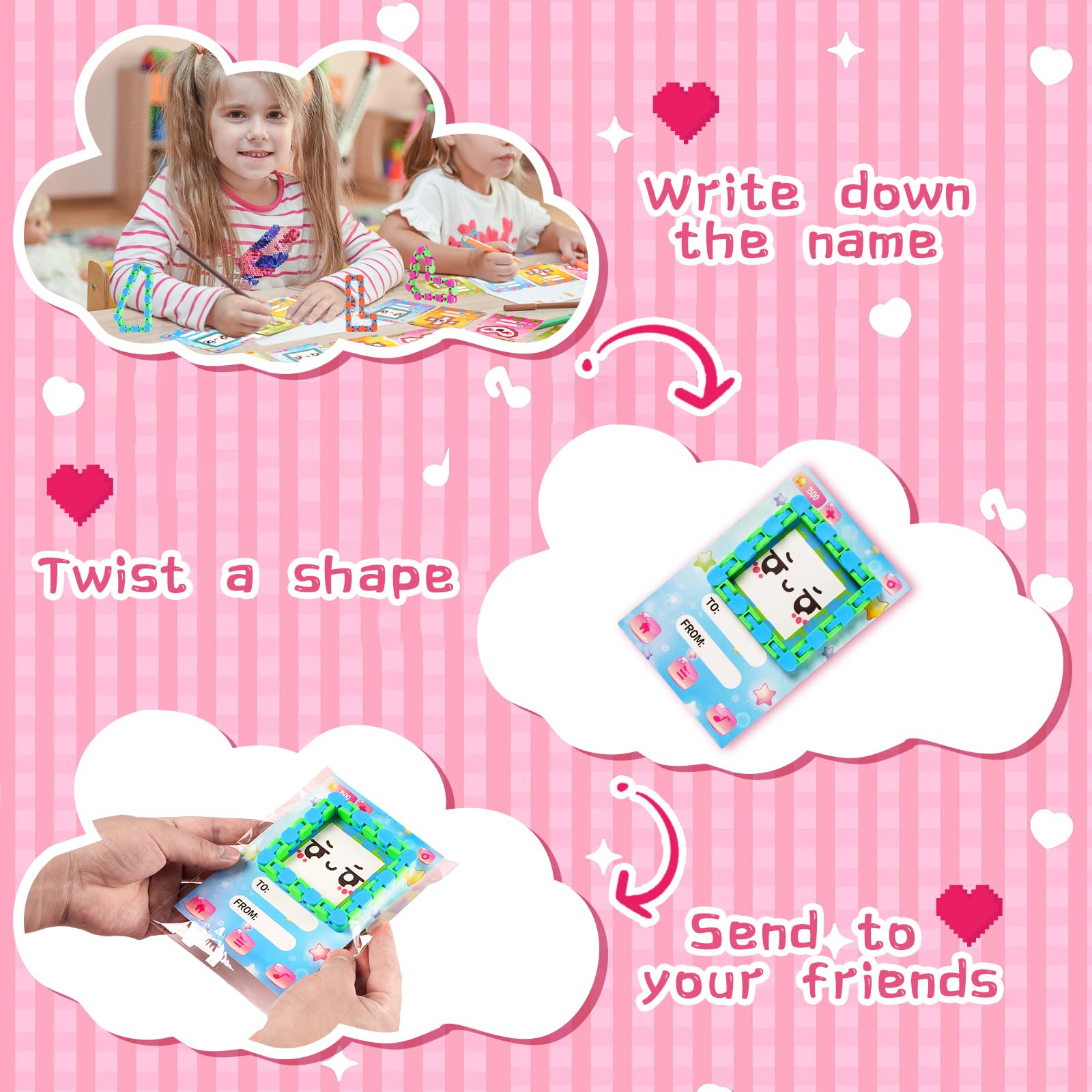 28 Pcs Valentine'S Day Cards Wacky Tracks Fidget Toys Valentines Class Gifts For Kids School Classroom Fidgets Snap Snake Click