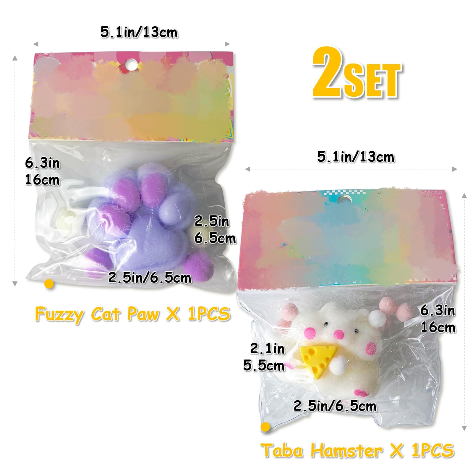 2Set Squishies Hamster & Fuzzy Cat Paw Squishies, Pinch Squishies For Adults Relieve Stress