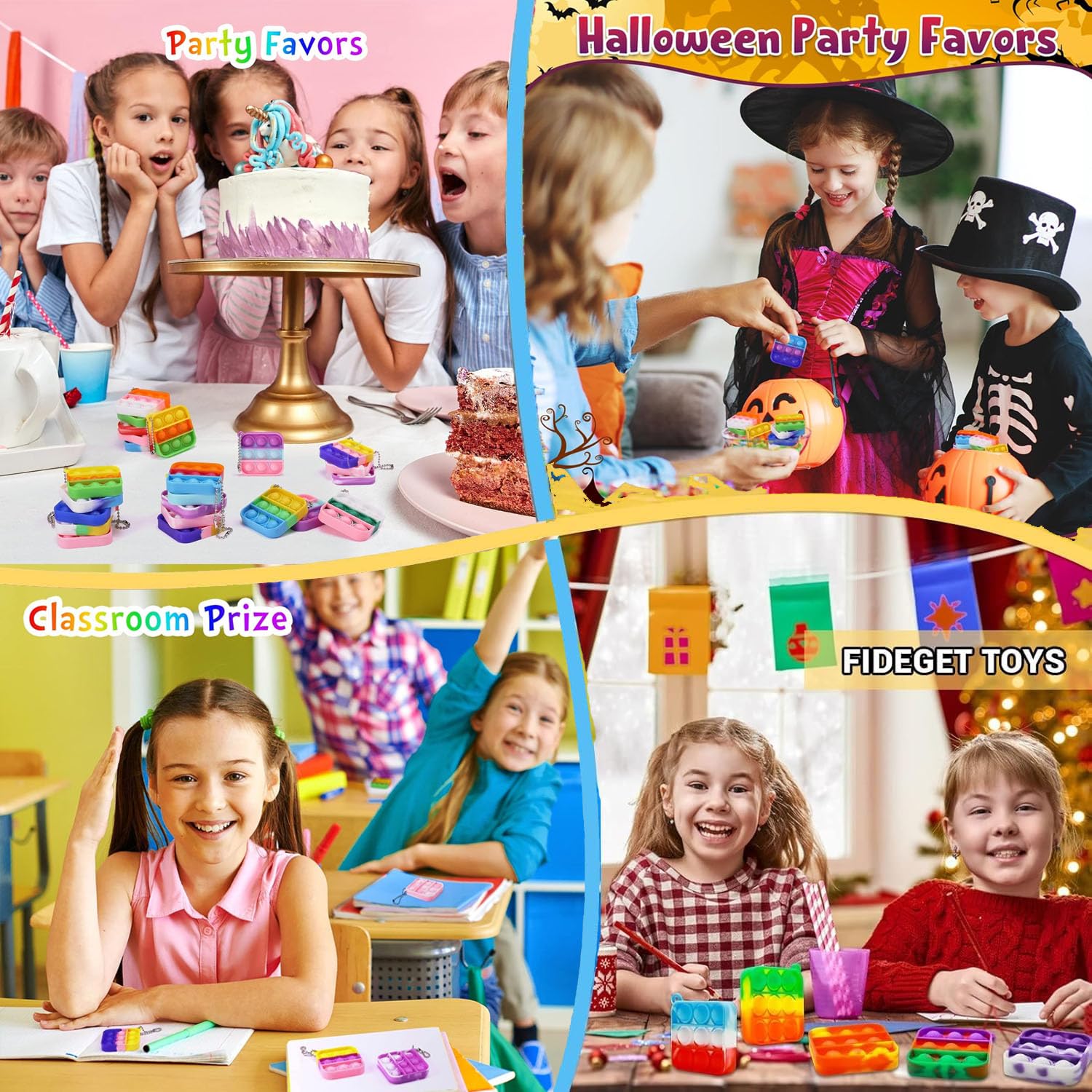 Mini Pop Keychain Bulk Party Favors Fidget Toys Bulk for Boy Girl mature-themed Fidgets Packs Sensory Stress Bauble Christmas Easter Birthday Party Supplies Goodie Bag Stuffer Classroom Prizes.