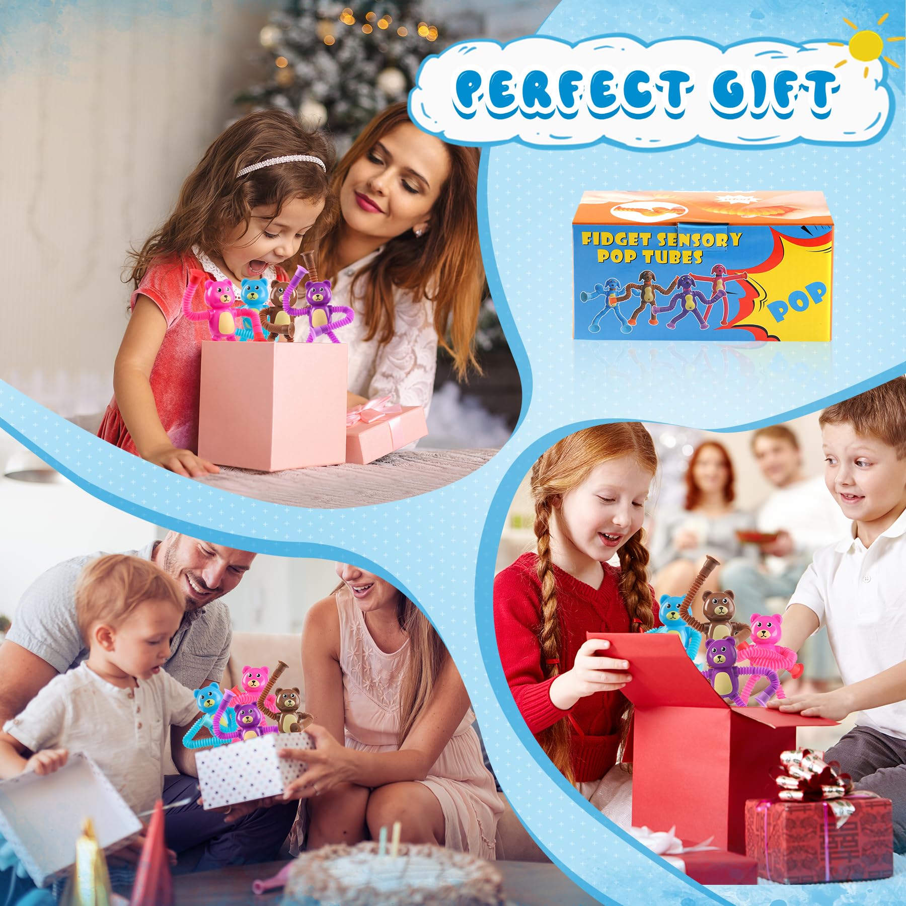 4 Pcs Telescopic Suction Cup Bear Toy,Bear Pop Sensory Tube Toddler Fidget Toys,Bear Party Favors for Kids,Classroom Exchange, S