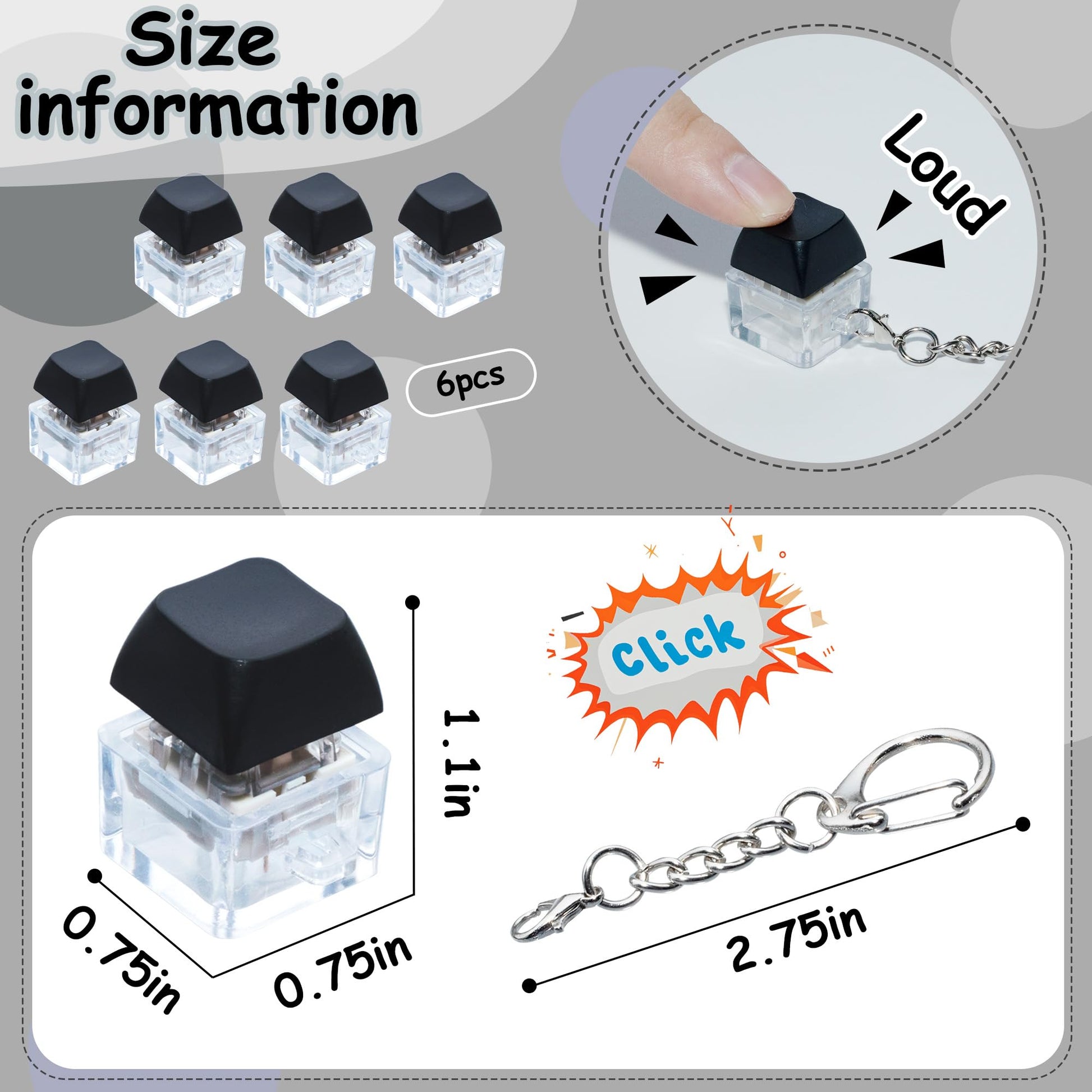 6 Pack Keyboard Fidget Toy Keyboard Fidget Keychain Keyboard Decompression Button Finger Clicker Toys Button Stress Relief Fidget Gifts for mature-themed to Relief Stress (Black)