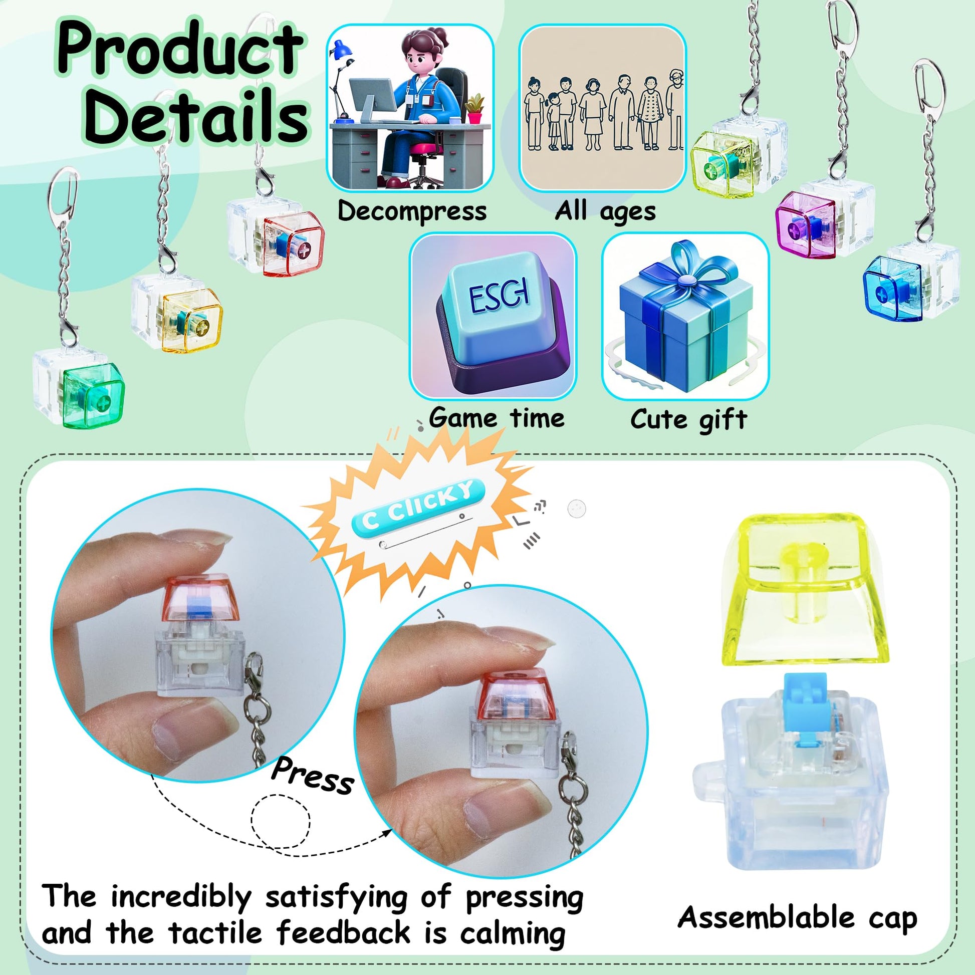 6 Pack Keyboard Fidget Toy Keyboard Fidget Keychain Keyboard Decompression Button Finger Clicker Toys Button Stress Relief Fidget Gifts for mature-themed to Relief Stress (Mix Transparent)