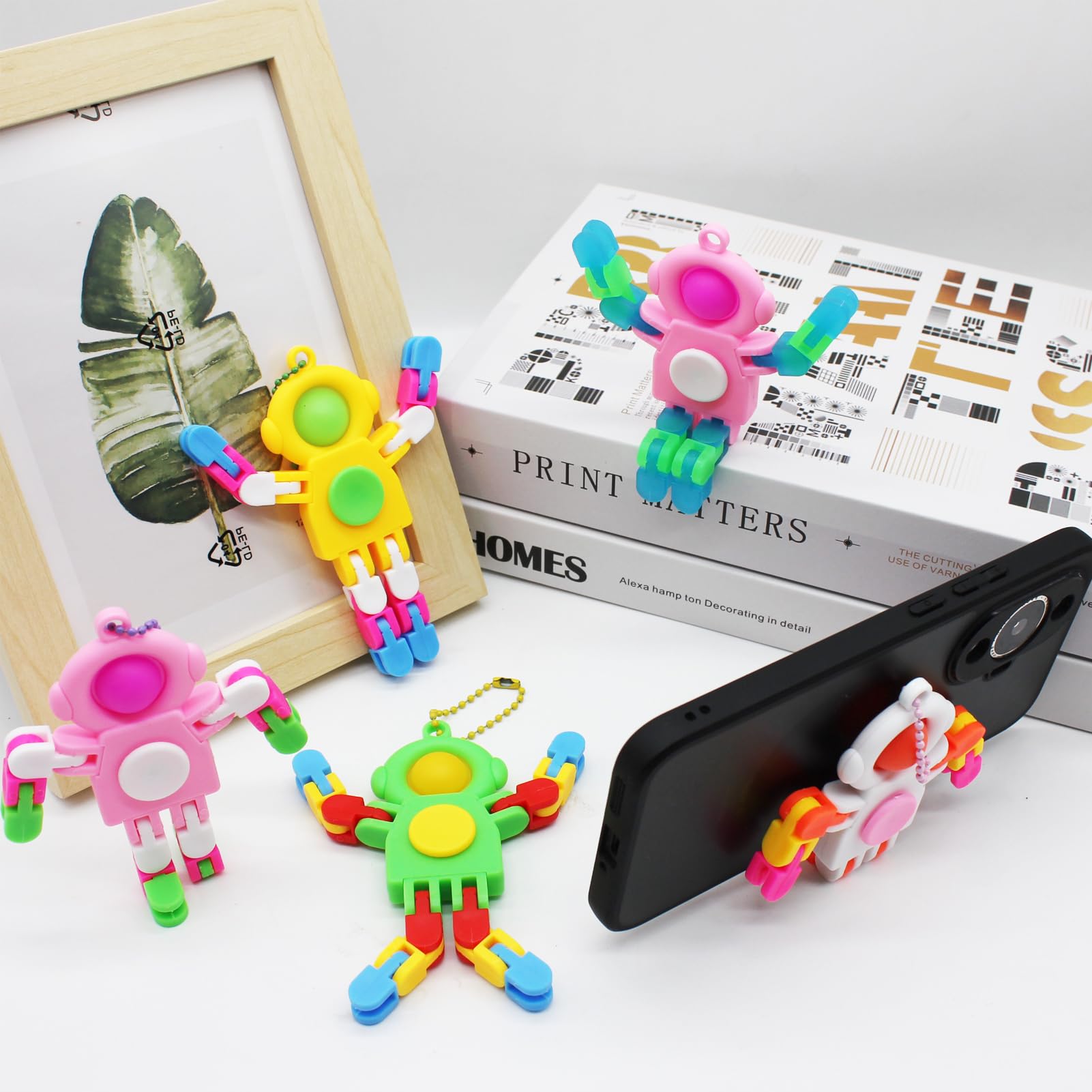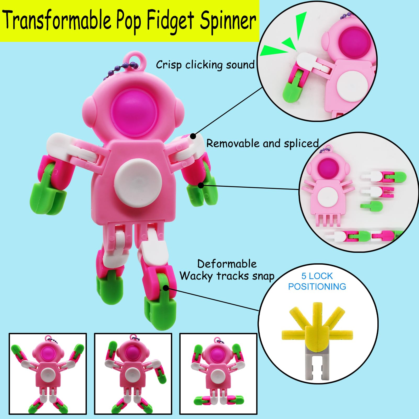 8 Pack Pop Fidget Spinner, Keychain Fidget Toys, Wacky Tracks Fidget Toys, Deformable Fidget Spinners Robot Fingertip Toy for Go
