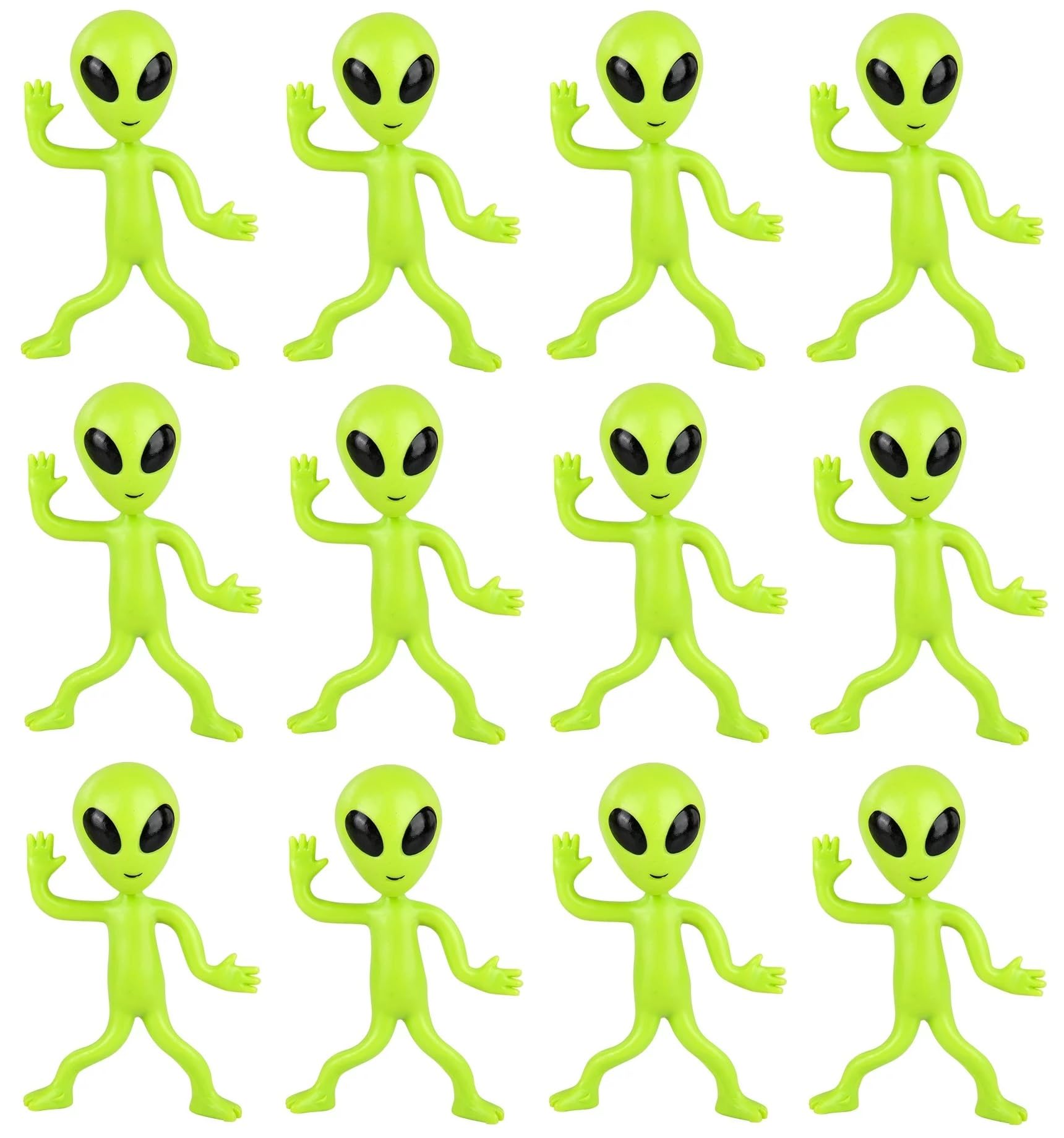 Bendable Rubber Neon Green Aliens - 12 Pack. (4) Action Figures Bendable UFO Aliens Limbs Sensory Stress Relief Fidget Toys. Gre