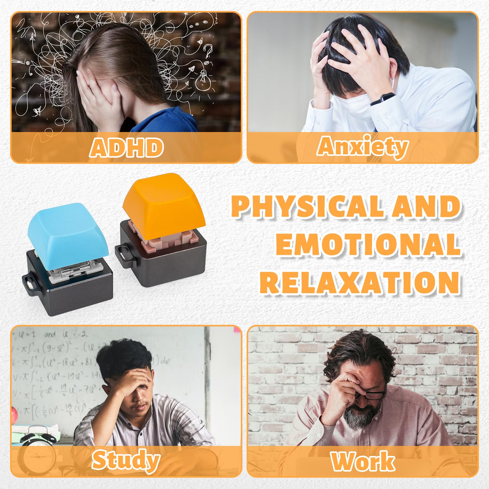 Features: Silent and normal, two-version to select. The key cap of ABS material, the pedestal of aluminum alloy material, the key chain of alloy. The sounds and rebound of tapping keyboard fidget toys can help you relieve stress. Two specifications are convenient for you to use in different occasions. Compact size and light weight make it convenient for you to carry around Specifications Weight: 2 * 0.075 pound Size:0.78*0.78*1 inch Package Contains: Keyboard fidget * 2