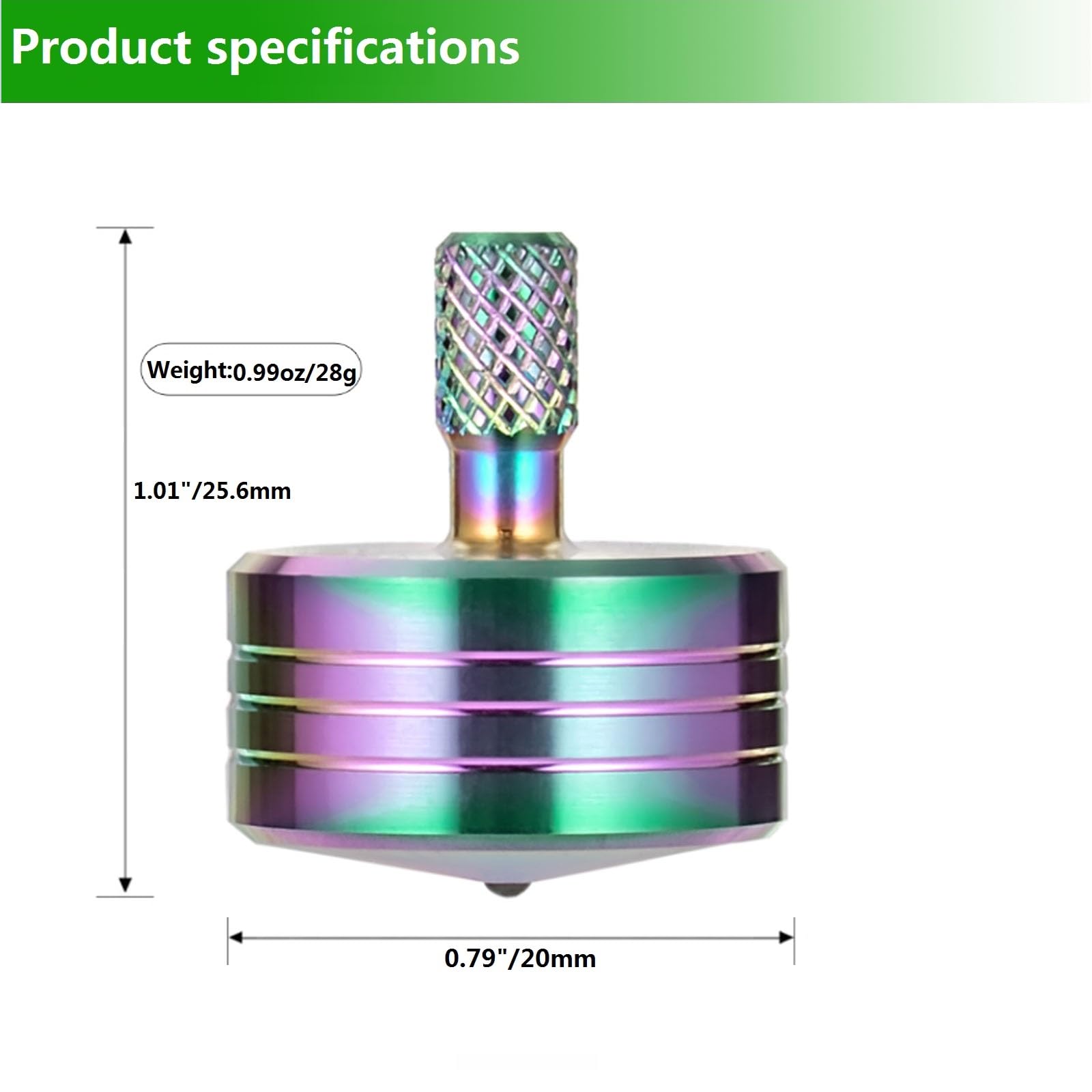 About Us: We mainly concentrated on designing Manufacturing and selling of physics toys. Hope our products can bring you endless pleasure.Best Gift: The top is a very meaningful gift memories of childhood precious friendship you can send it as a gift to your friends or relatives and so on.Durable: All of our tops have excellent wear resistance are well made have no scratches no machine marks and are perfectly balanced.Knurled Upper Top Body: Knurling on the stem allows for a high-torque rip to develop high RPMs at launch At the same time easier to spin.Spin Long Time: After practicing a skilled mature-themed could spin it for 3-6 minutes easily. A perfect gift for every spinning top lover.High Performance: this is a terrific looking high performance mini spinning top. Launches easily settles quickly and spins Quiet smoothly. well-made: We inspect and test each top carefully (and violence test was introduced too) to ensure you have a good shopping experience. Overall Dimensions: 0.74 inch/ 0.83 inch(Diameter x High) Net Weight: 0.95oz Material: 304 Stainless Steel Silicon Nitride Ceramic beads Packing List: Spinning Top x1