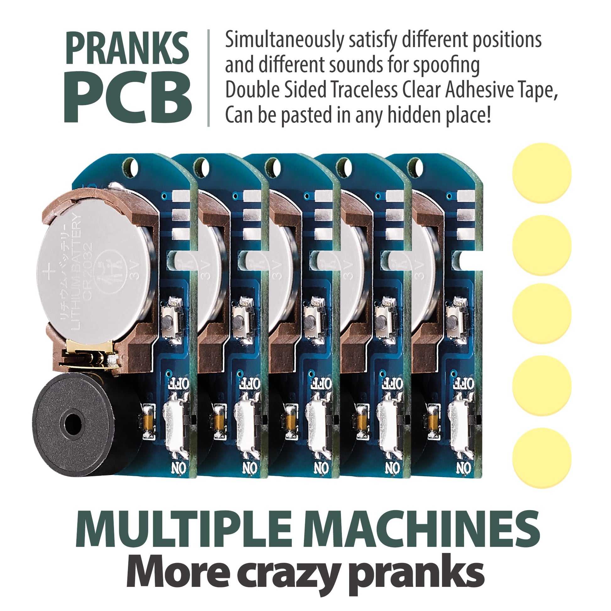 This is a prank noise maker and you will get 5 of the same device with one purchase. Each machine has built-in 7 different noise options. You just need to turn on the switch then press the small black button to select the noise you like then hide it and it will emit the sound you selected within 5-20 minutes. Then wait for your friends or colleagues to go crazy about it!