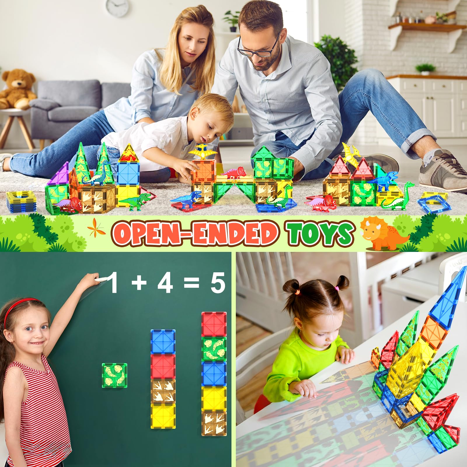 Coodoo Dinosaur Toys Magnetic Tiles Jungle Dinosaur World Starter Set - Kids Games Boys Ages 3-5 4-6 Girls STEM Magnetic Blocks