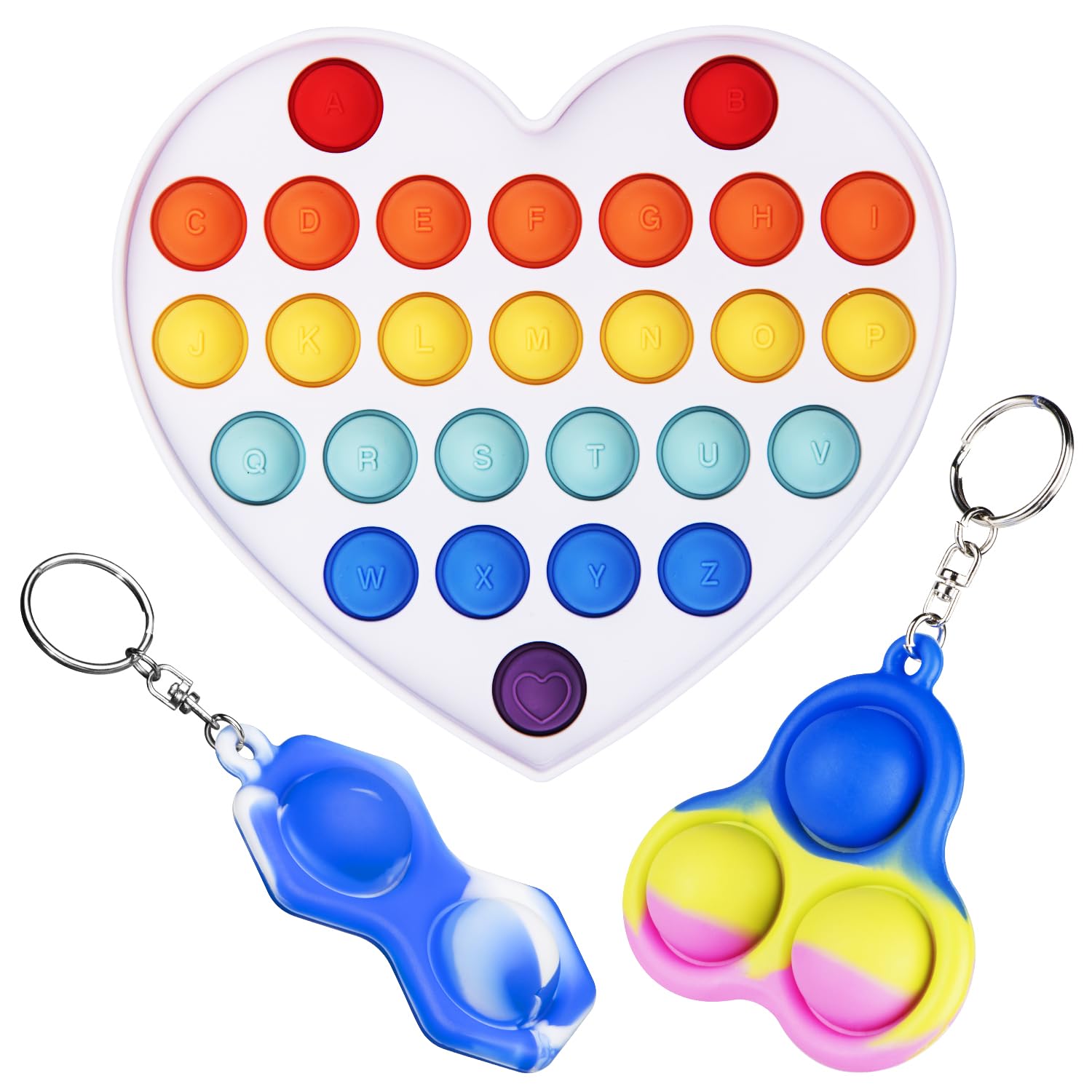 - Q: What sizes are available for the Cucue fidget toys? A: The Cucue Simple Fidget Pop Toys are available in different sizes, including a mini keychain popper, a 3-pop popper with an ABS frame, and a multicolored heart-shaped popper.