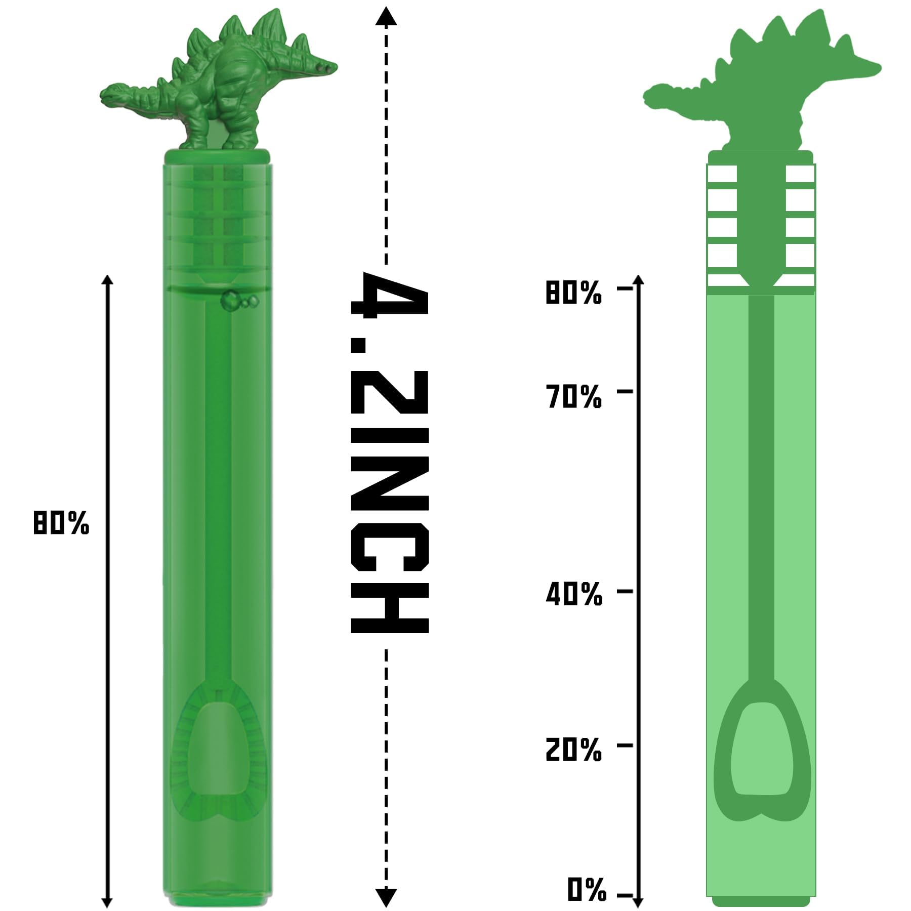 Jurassic Style Dinosaur Design: 8 different dinosaur lips: Tyrannosaurus, Velociraptor, Parasaurolophus, Pterosauria, Stegosaurus, Brachiosaurus, Triceratops, Ankylosaurus Size: Each bubble is 4.2 inches tall, pre-filled with 0.2 oz bubble liquid, and the bottle is reusable Widely Used: This Jurassic dino bubble is perfect for adults or kids and is also a great companion to create a romantic atmosphere at any party favors. Can be used as birthday decorations, treasure boxes, school prizes, carnivals, pinata goodie bag stuffers, Christmas fillers, Easter baskets, Halloween, Thanksgiving, Children's Day, New Year gifts for boys and girls Packaging Design: This dinosaur bubble is a display box. To tear the guidance line under the box, you can get a exquisite display box. The built -in box can keep the bubble stick upright and not leaked. It is convenient to take on any occasion Warning: CHOKING HAZARD-Small parts. Not for children under 3 years All designs are patented