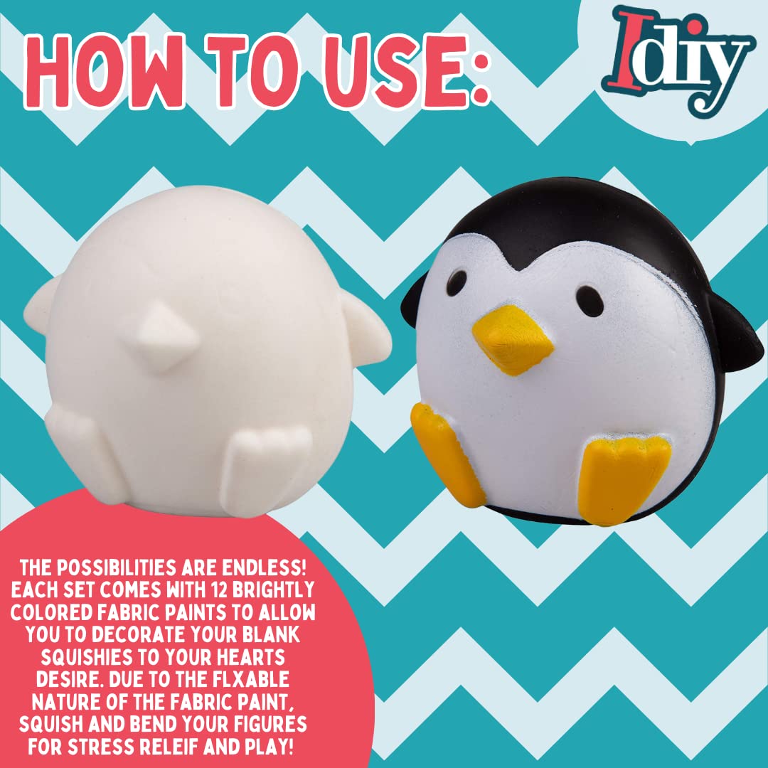 Diy Jumbo Blank Squishies & 3D Fabric Paint Combo 12 Pack - White Kawaii Slow Rising Squishy Toys For Drawing, Painting, Decorating - Soft & Scented Stress Relief Craft