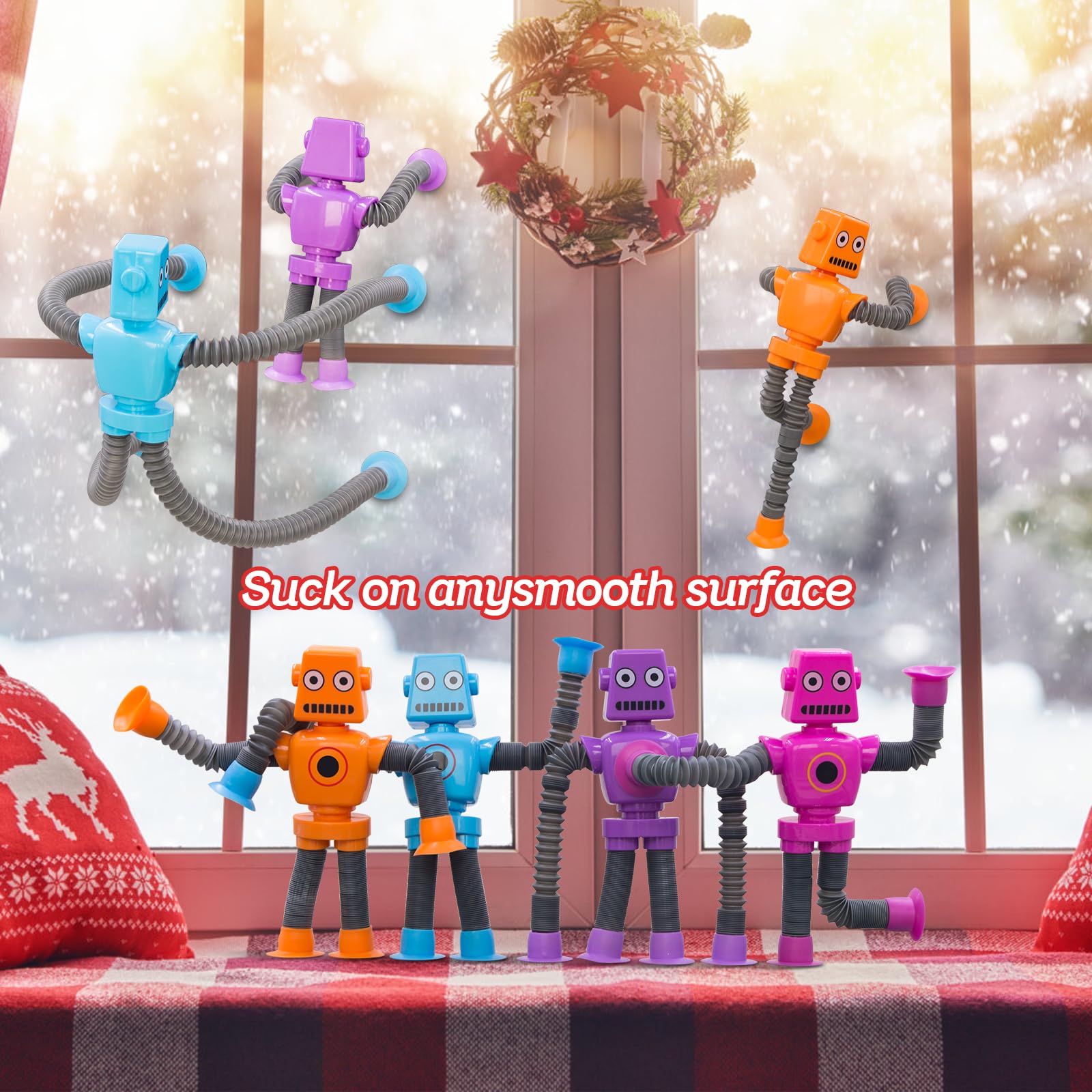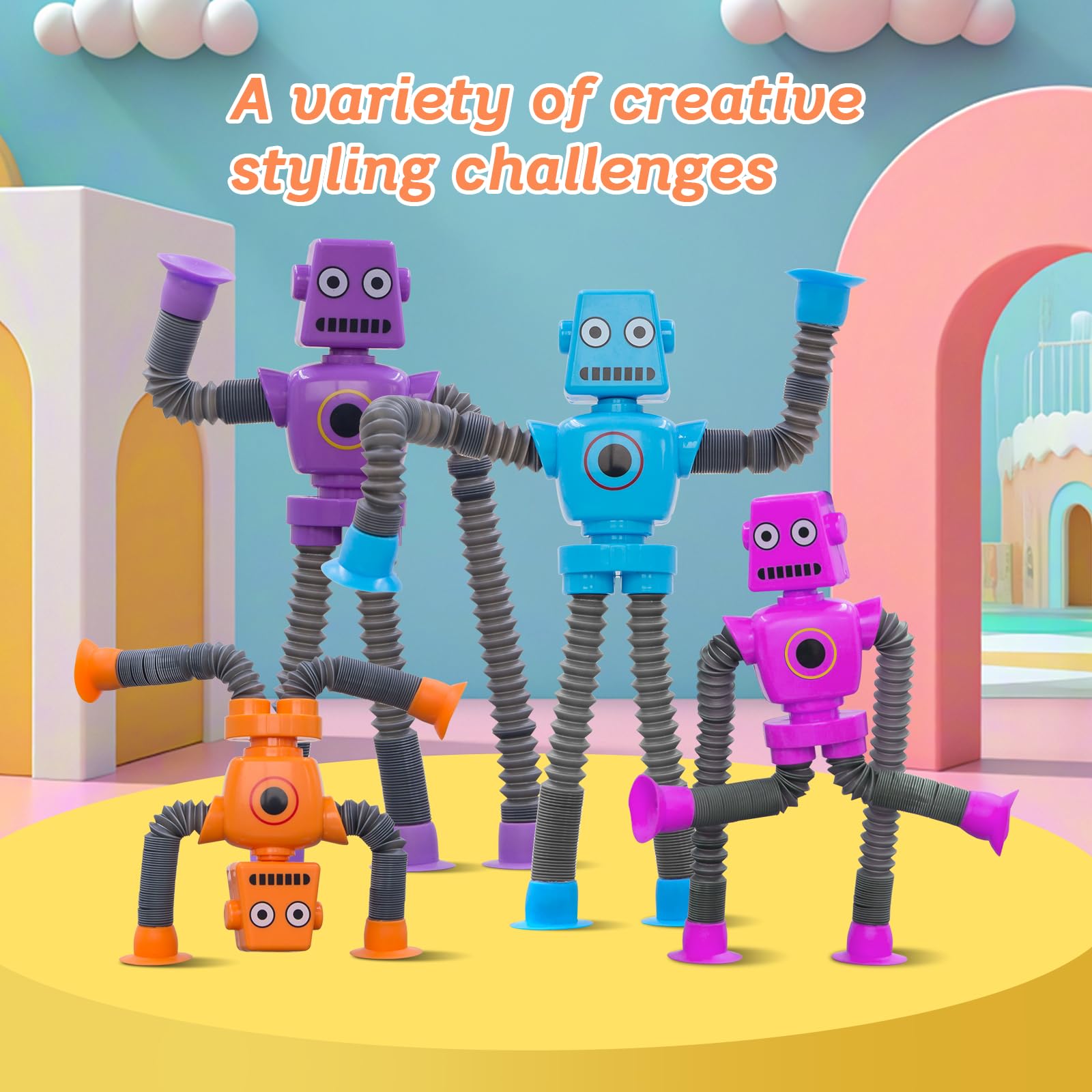 Easter Basket Stuffer Gift, Pop Tubes Robot Fidget Toys For Kids, 2Pack Fidget Pop Telescopic Suction Cup Toy For Stress And Anx