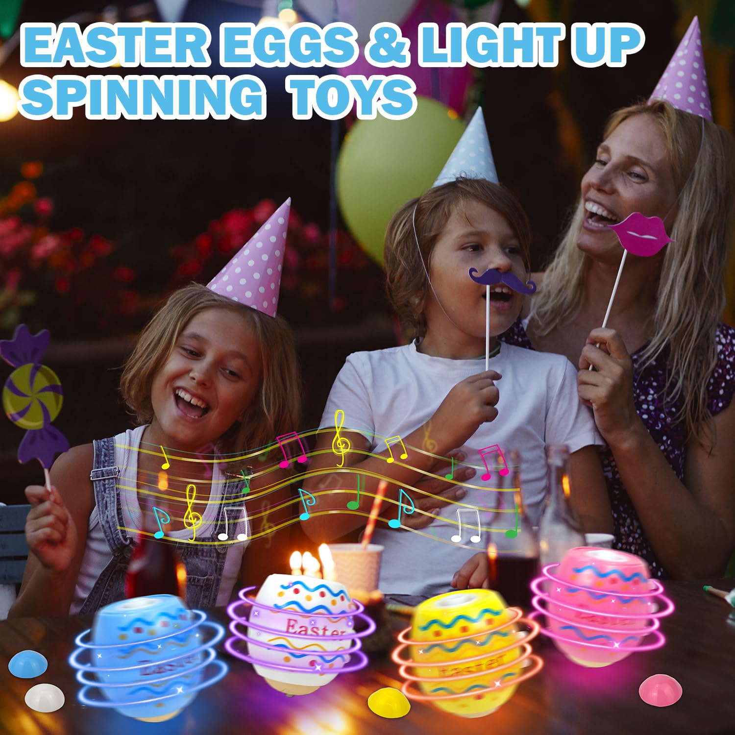 Easter Basket Stuffers Fillers for Toddlers 6 Pack,Light up Easter Egg spinning Top Toys with Music for Kids, Goodie Gift Bag Stuff Treats,Non Candy Hunt Prizes Party Favors Classroom Trinkets for Boy