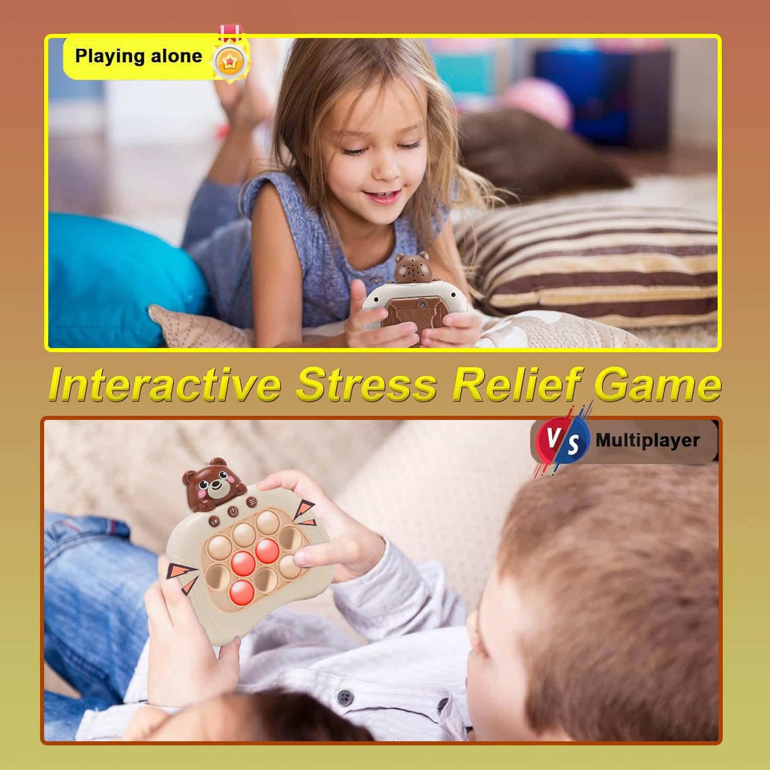 Fast Push Game Fidget Toys Handheld Game Console Bubble Game Console Puzzle Game Light up Push Game Kids Toys for Ages 3-12 Birthday for Boys Girls mature-themed (Brown Bear)