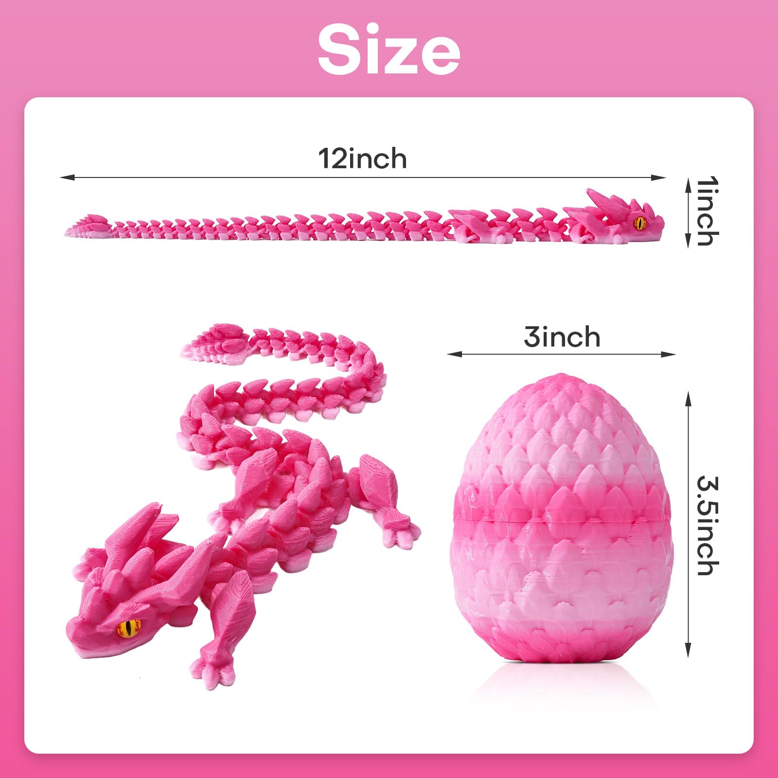 FYEFKJSA 3D Printed Dragon Eggs with Dragon Inside - 12Inch Articulated Fidget 3D Printed Animals Interesting Decorative Gift Easter Basket Essentials Stuffers (Cherry Blossom)