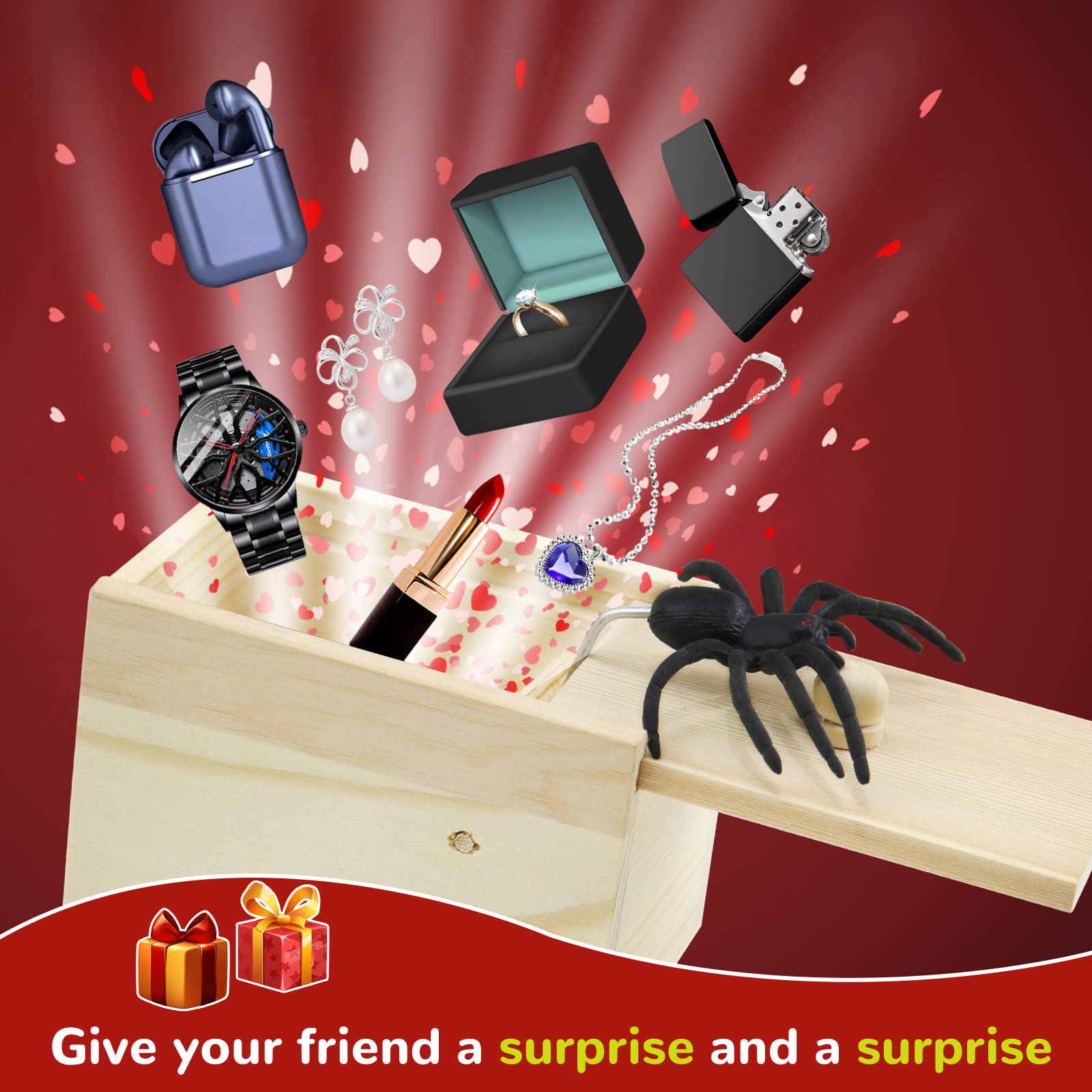 View compareGooswexmzl Spider Scare Prank Box, Pop Out Rubber Spider Handmade Wooden Scare Box, Fun Surprise Joke Toy, Practical Toy For Kids Adults
