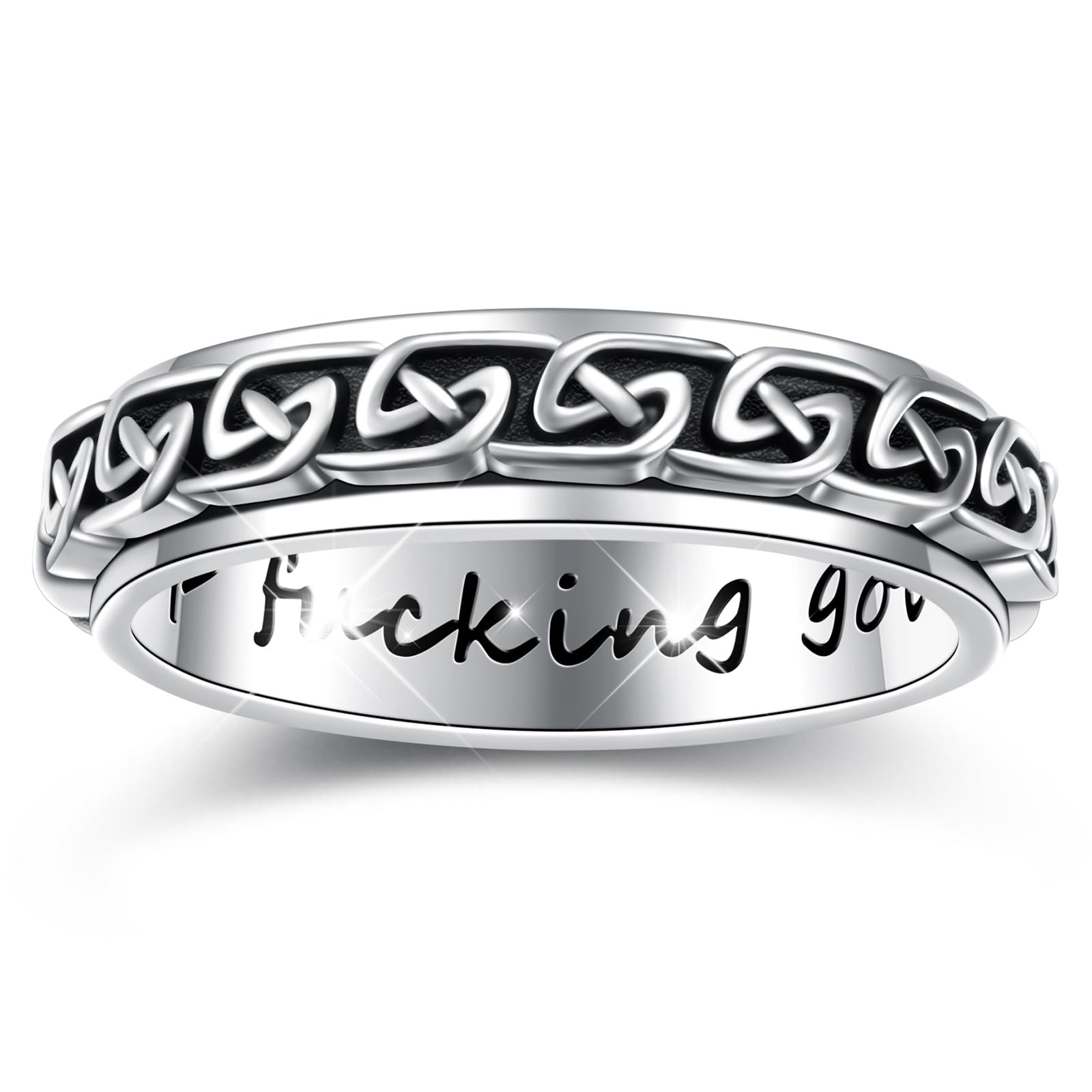 HOOHWE Spinner Rings for Anxiety,S925 Sterling Silver Fidget Anxiety Worry Relieving Boredom Band Rings (5.Celtic Knot Rings, 6)
